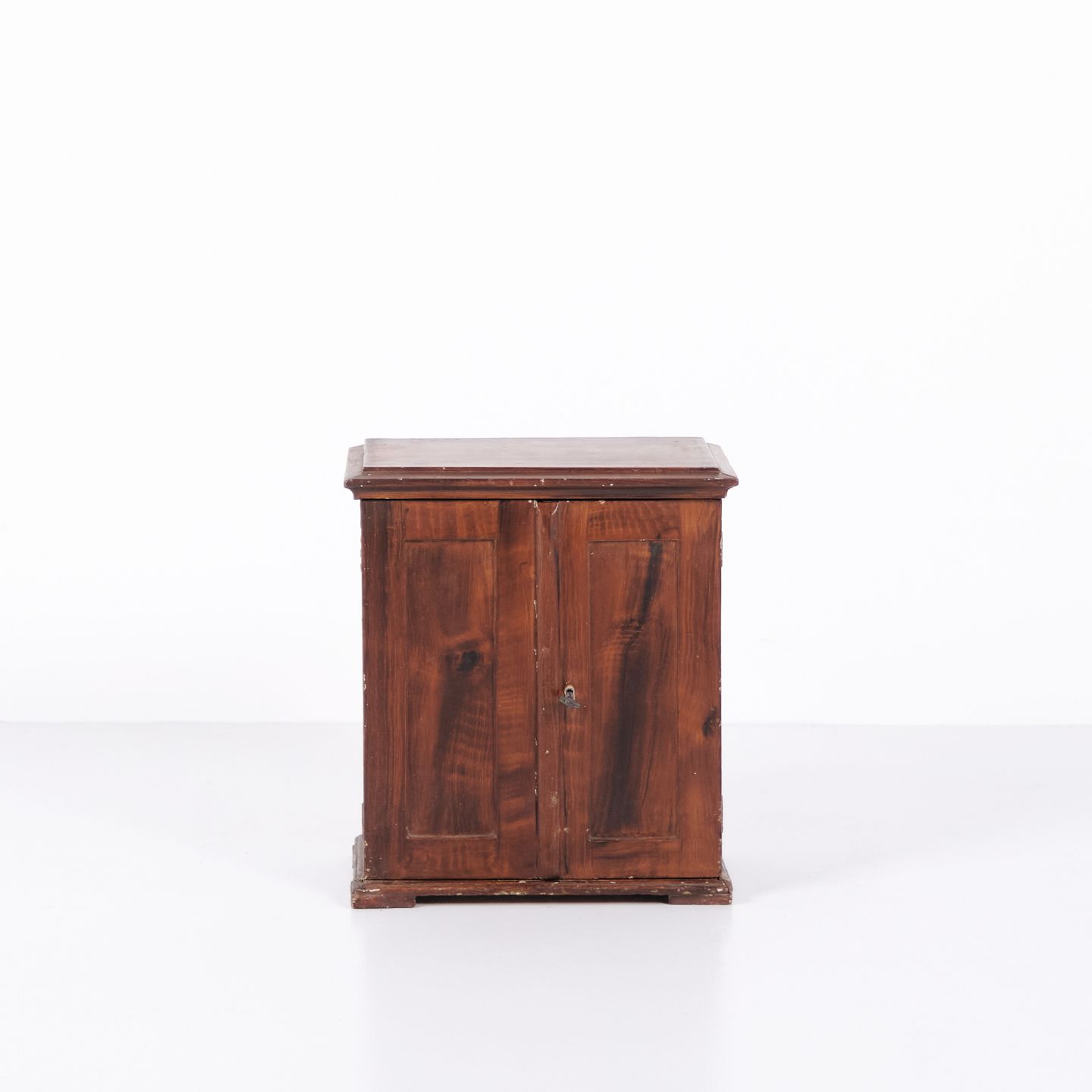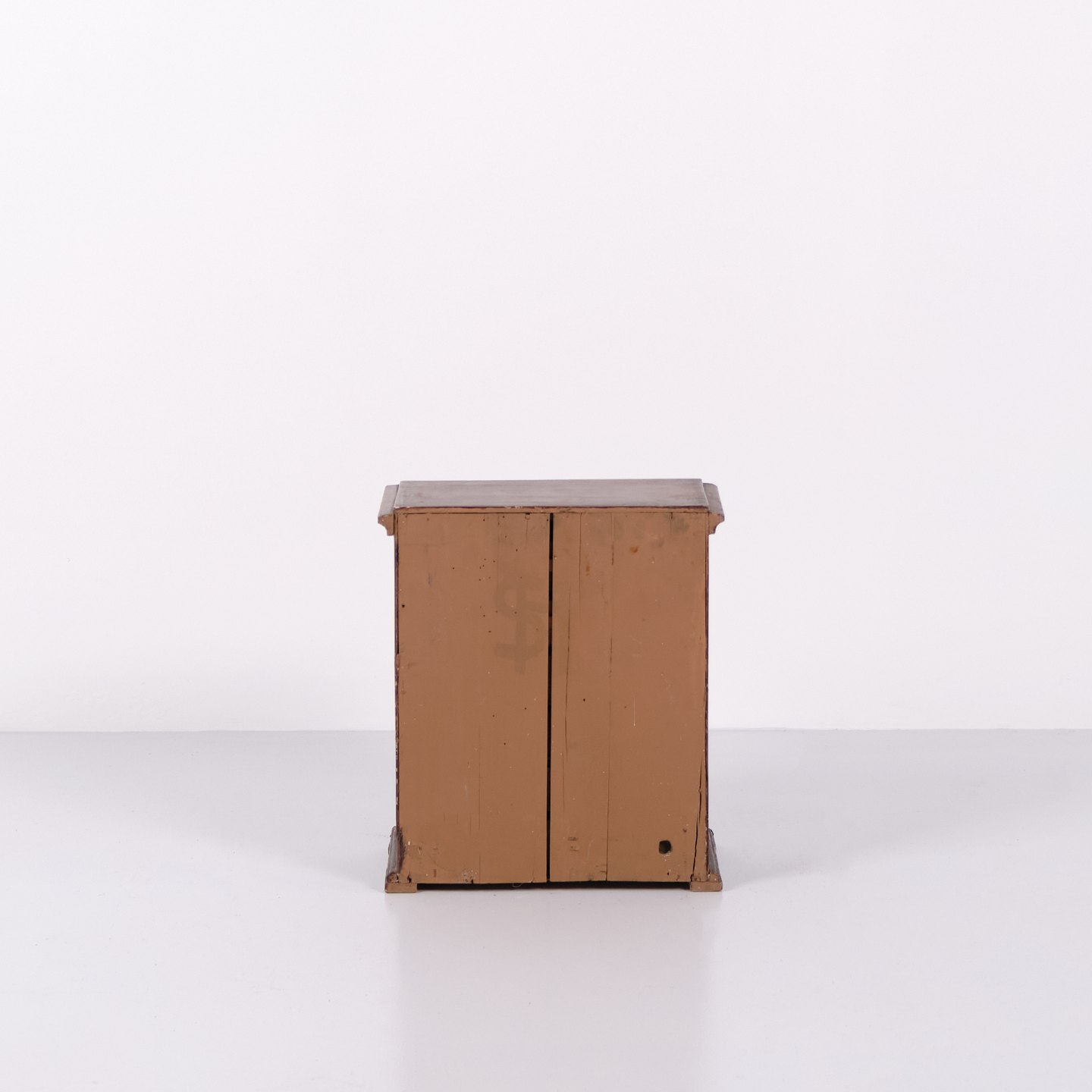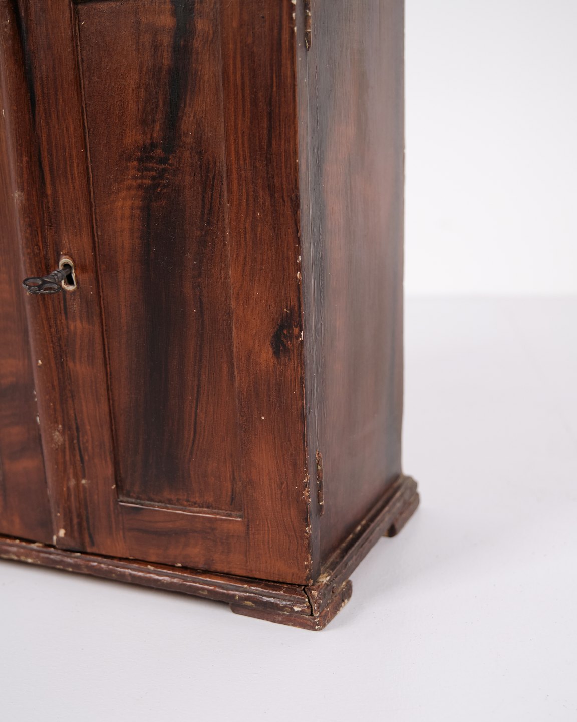 Antikt miniaturemøbel i åremålet fyrretræ med håndsmedede beslag fra 1840’erne. Unikt og dekorativt samlerobjekt med historisk karakter.