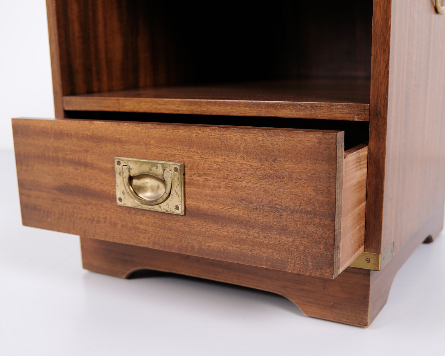 Par sengeborde i mahogni med lædertop fra Bevan Funnell. Military Campaign stil fra 1960’erne med klassisk engelsk design.