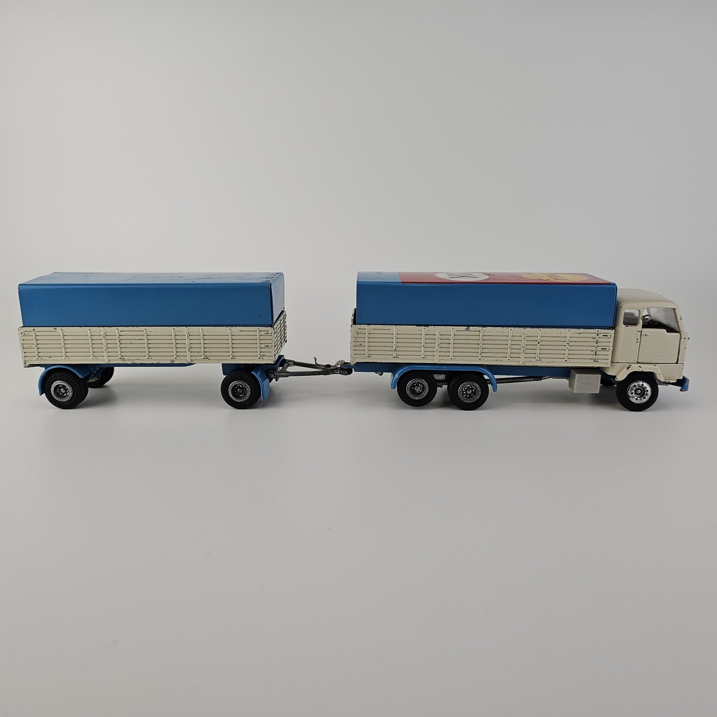 Legetøjsbil. Lastbil med Shell logo, døre der kan åbnes, førerhus der kan tippes og tilhørende anhænger