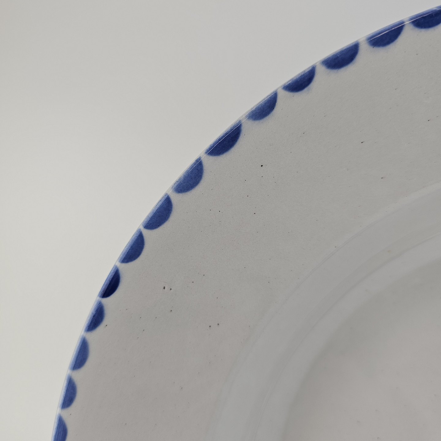Dyb tallerken i fajance fra stellet Geranium II fremstillet i perioden 1927-1940.