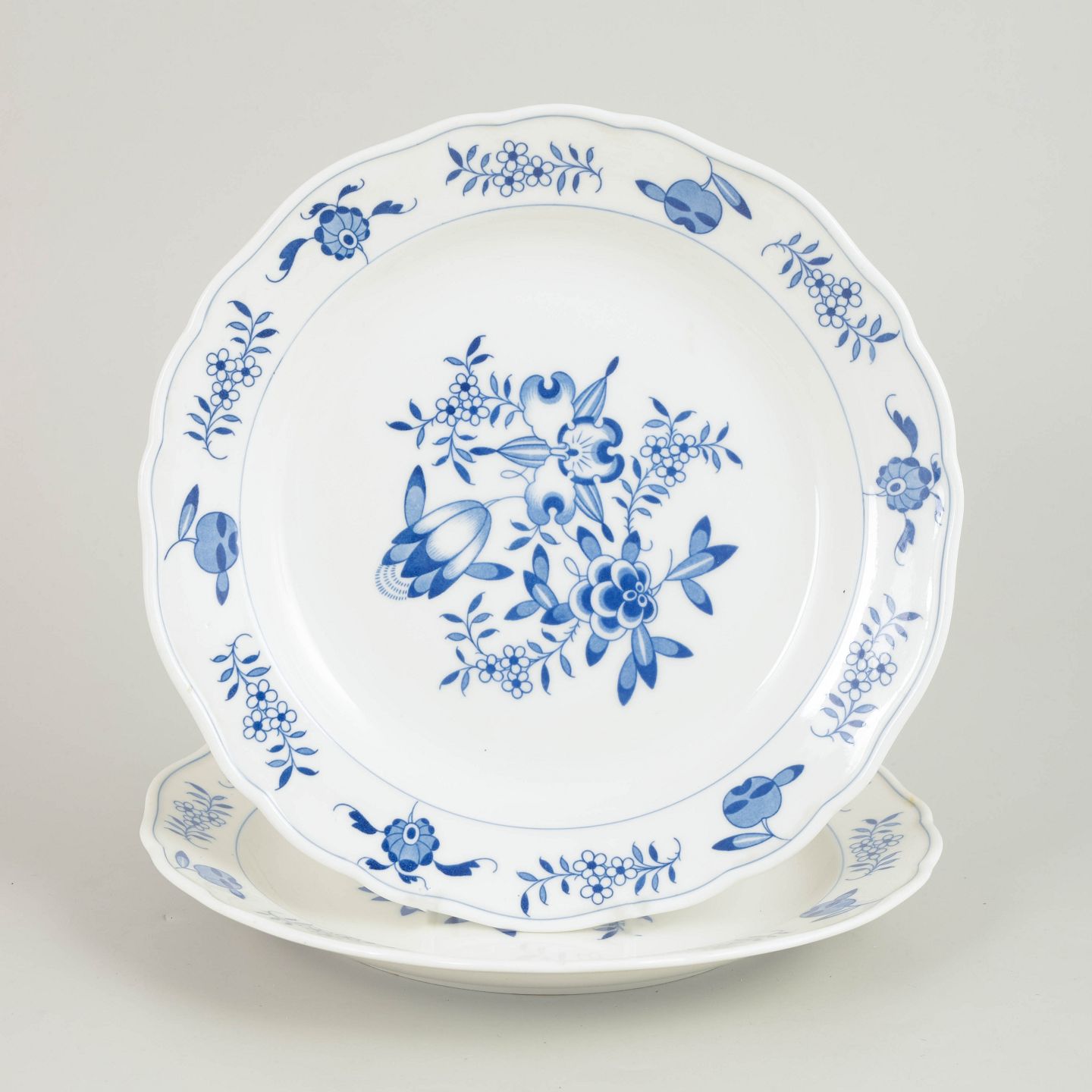 Sæt af to frokosttallerkener i håndmalet porcelæn med Blå Orkidé dekoration. Fremstillet hos Meissen og mærket med Meissen krydssværd. Annulleret med to indridsede streger under bunden.