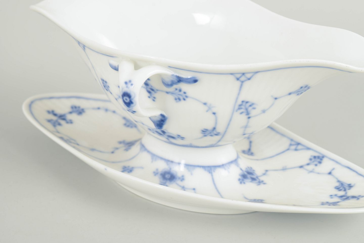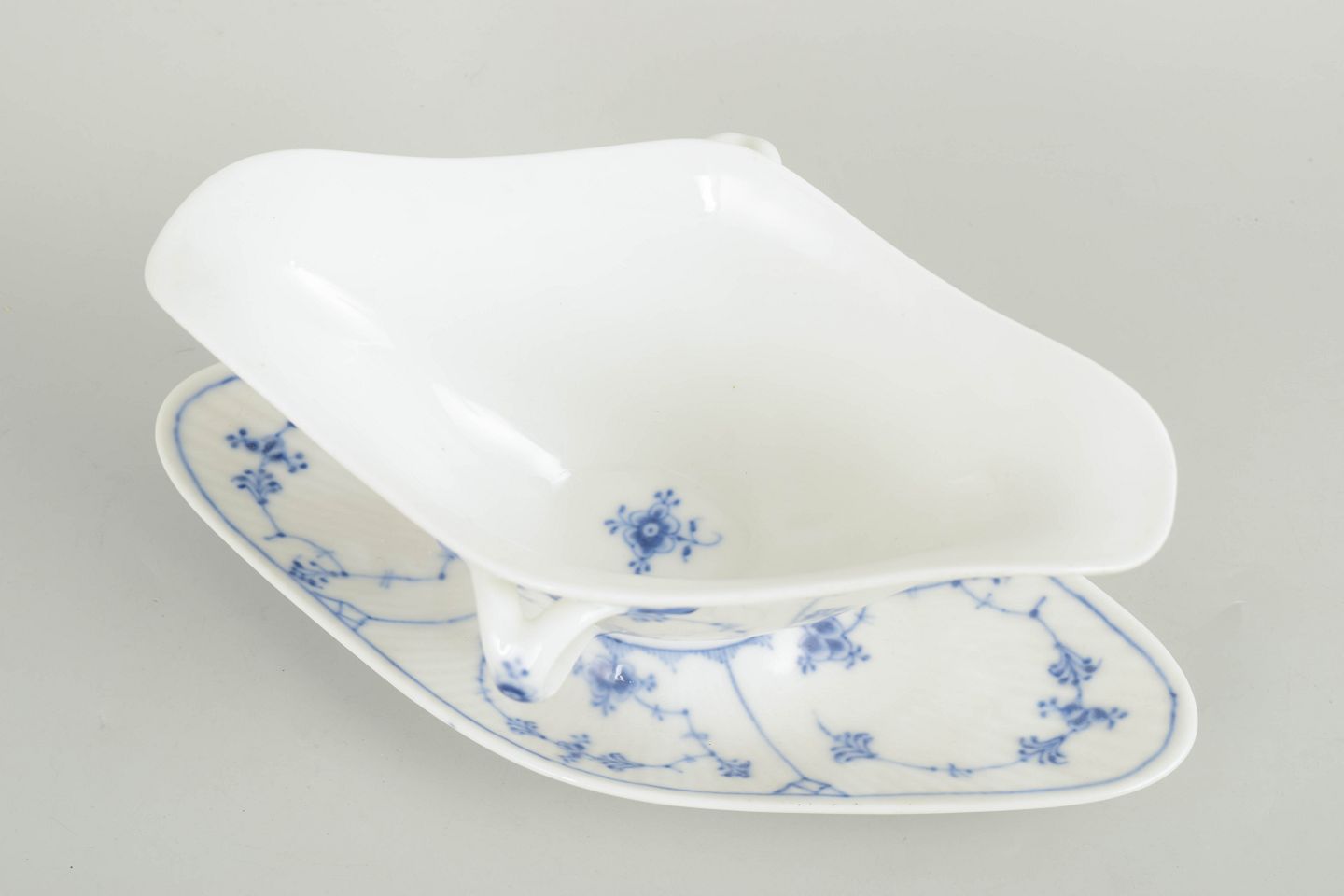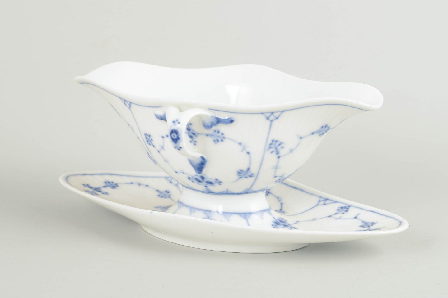 Royal Copenhagen Musselmalet Riflet sauceskål med fast underfad.