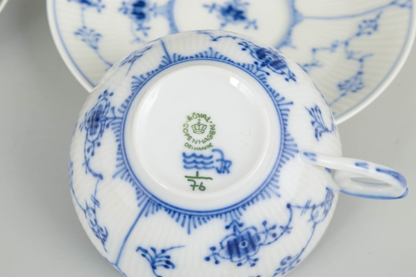 Royal Copenhagen blev grundlagt i 1775 i København under kongelig bevilling. Fabrikken er internationalt anerkendt for sit håndmalede porcelæn og sit høje kunstneriske niveau. Musselmalet Riflet er fabrikkens mest klassiske stel, introduceret i slutningen af 1700-tallet og fortsat produceret med traditionel håndmalingsteknik.