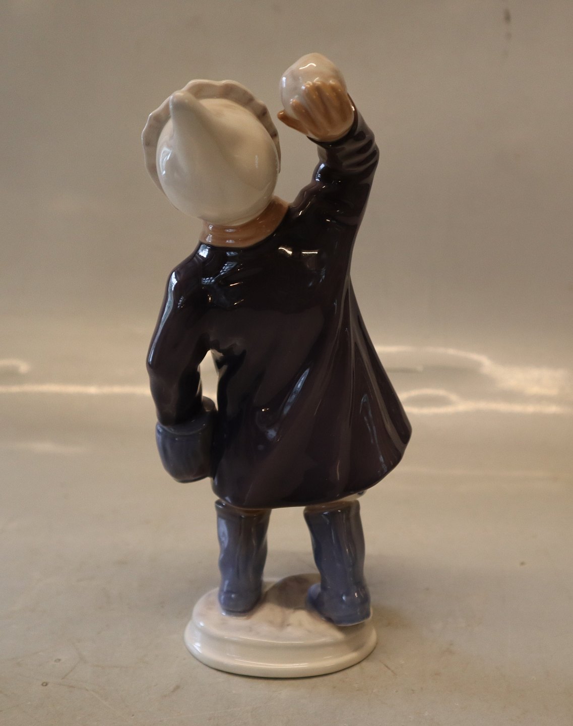 Dahl Jensen 1180 Pige med snebold (DJ) 19 cm. Mærket med kongelig krone og DJ Copenhagen i hel og fin stand. 2. sort