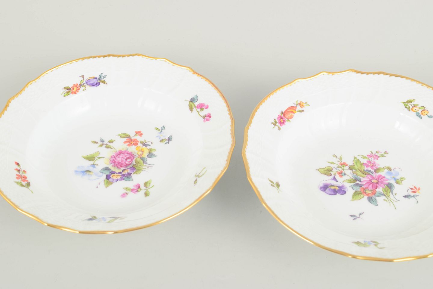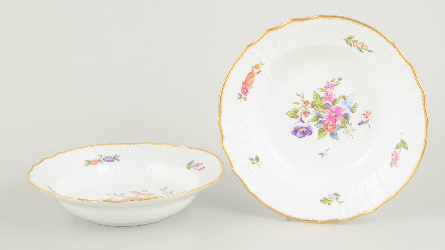Royal Copenhagen, saksisk blomst sæt af to dybe tallerkener.