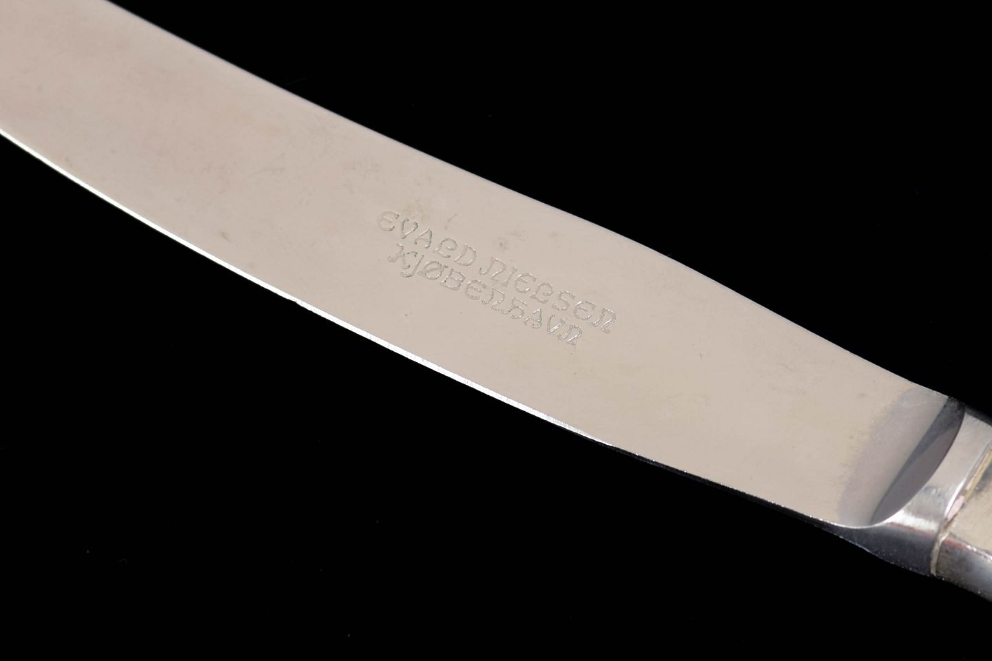 Elegante frokostknive i sterling sølv og rustfrit stål. Model nummer 14 med klassisk, let afrundet skaftform og glat klinge. Fremstillet hos Evald Nielsen.
