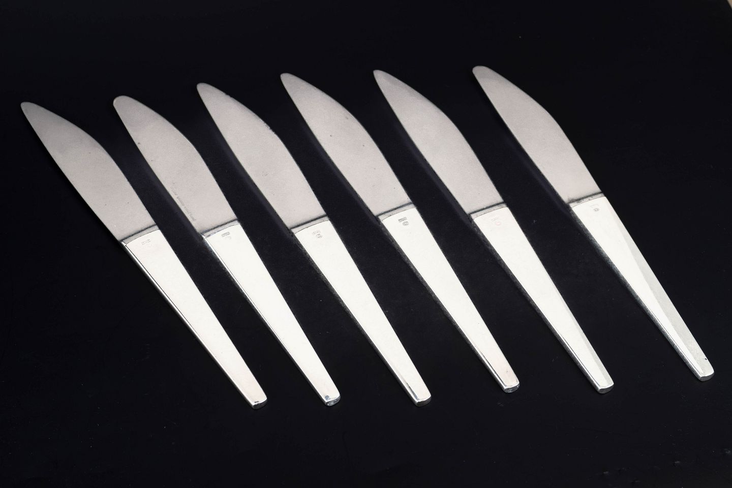 Henning Koppel for Georg Jensen, sæt af seks middagsknive Caravel.