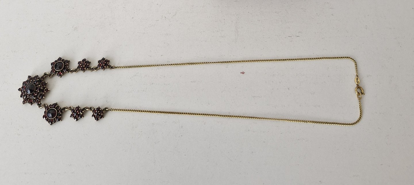 Vintage granat collier af forgyldt metal