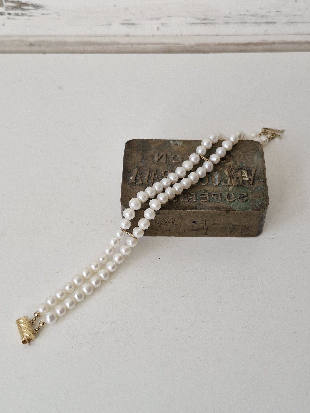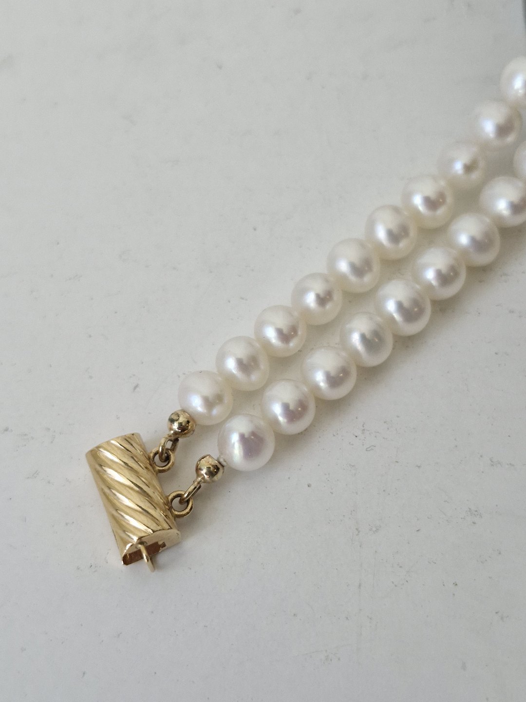 Toradet kulturperle armbånd med lås i 18 kt guld