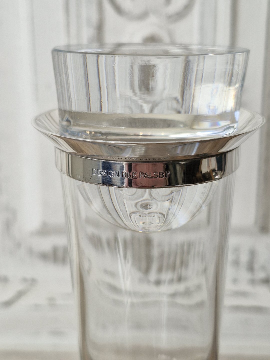 Ole Palsby for Georg Jensen karaffel i glas med krave af sterlingsølv