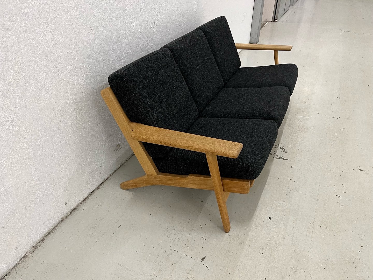 Eksklusiv 3-personers sofa designet af Hans J. Wegner – model GE-290 – udført i sort uld med grå nister og stel i massivt egetræ.