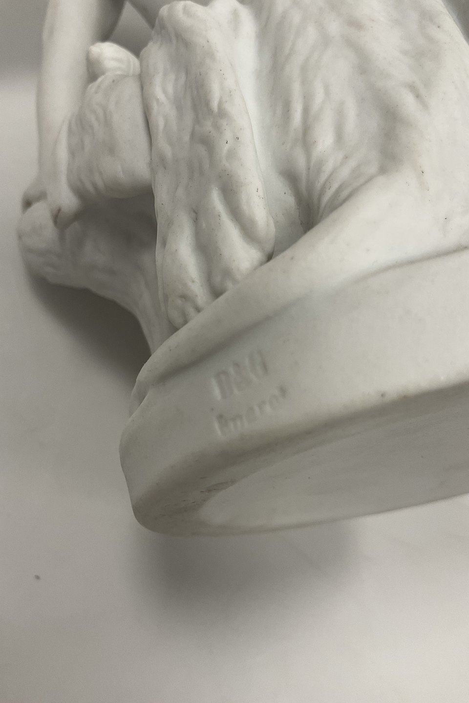 Figur har slag på finger og vinger. Mangler bue og afslag på base