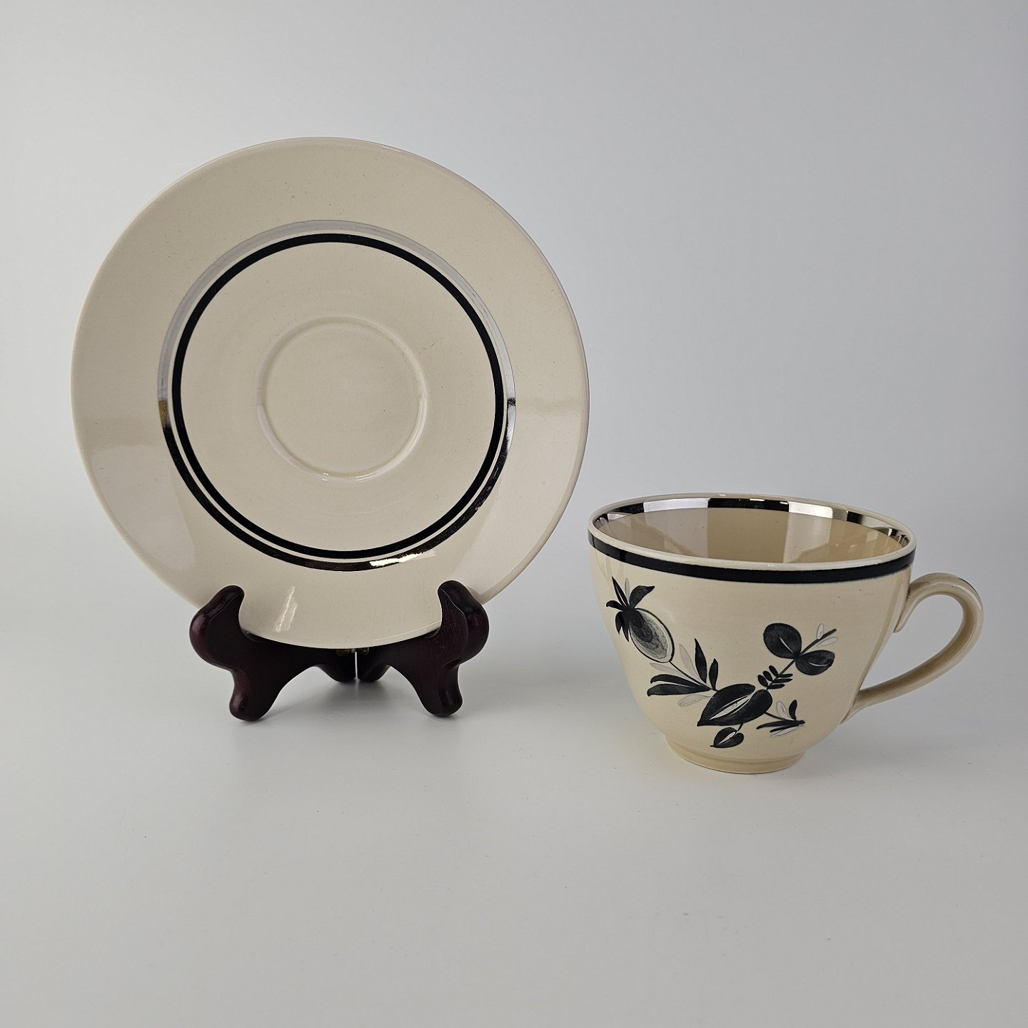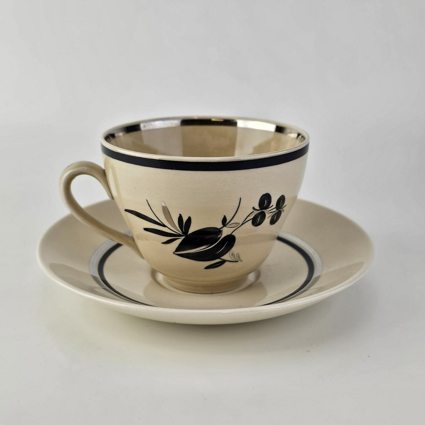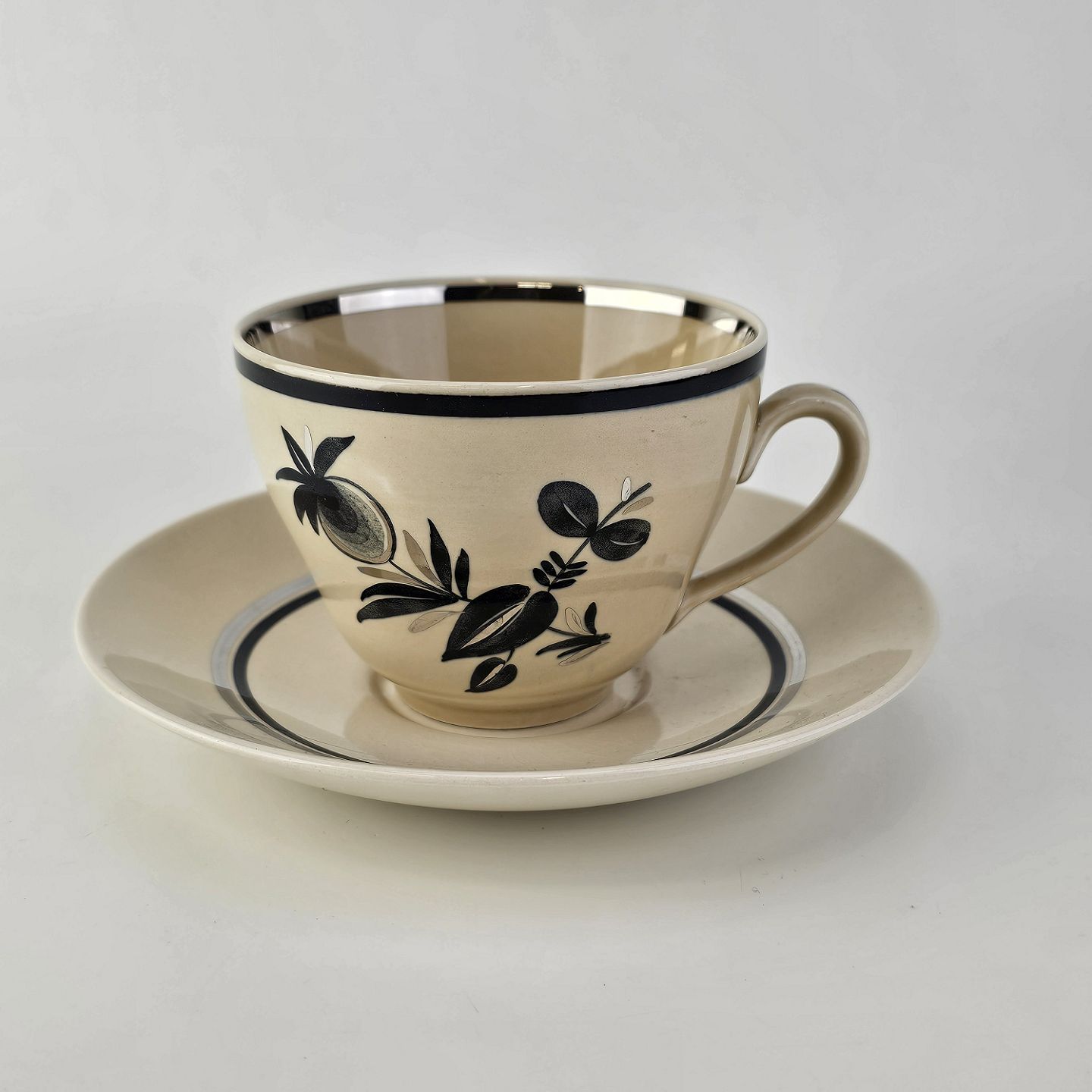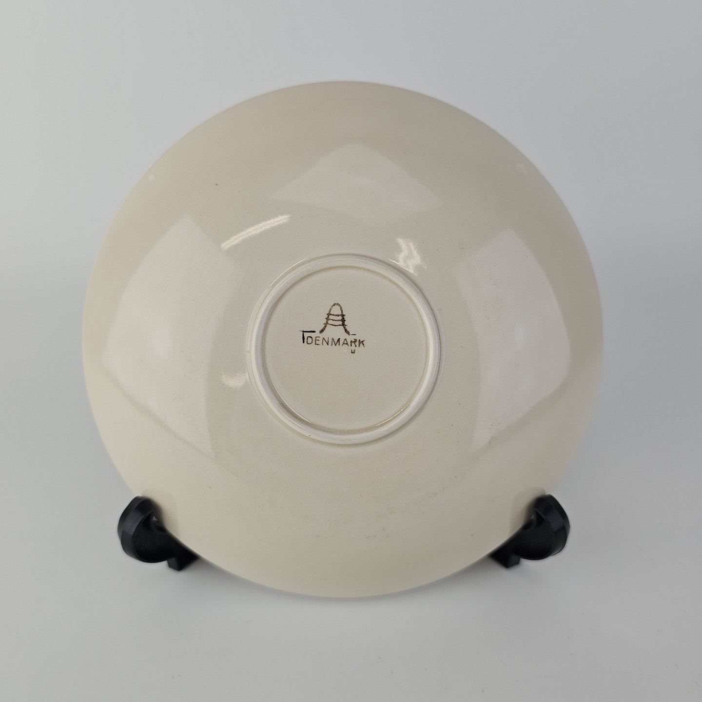 Tekop med underkop i fajance fra stellet Dragsholm fremstillet i perioden 1934-1965.