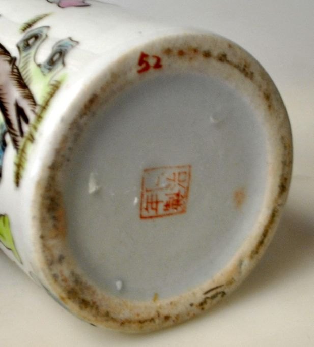 Kinesisk porcelæns penselbæger, 19./20. årh. Med håndmalet dekoration med en masse mennesker. Stemplet. H.: 13 cm.