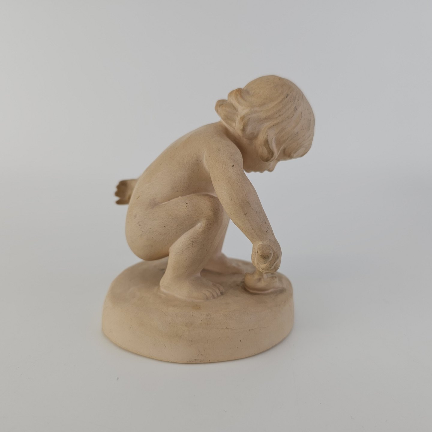 Figur i terrakotta af et barn med en skovl. Nr. 43