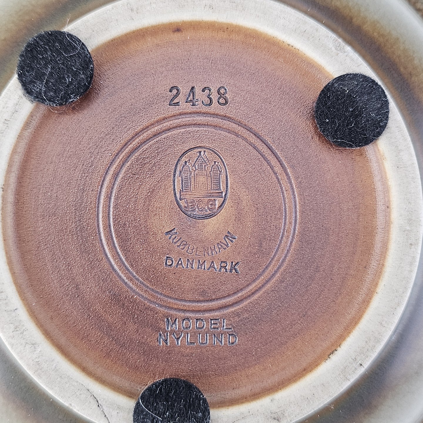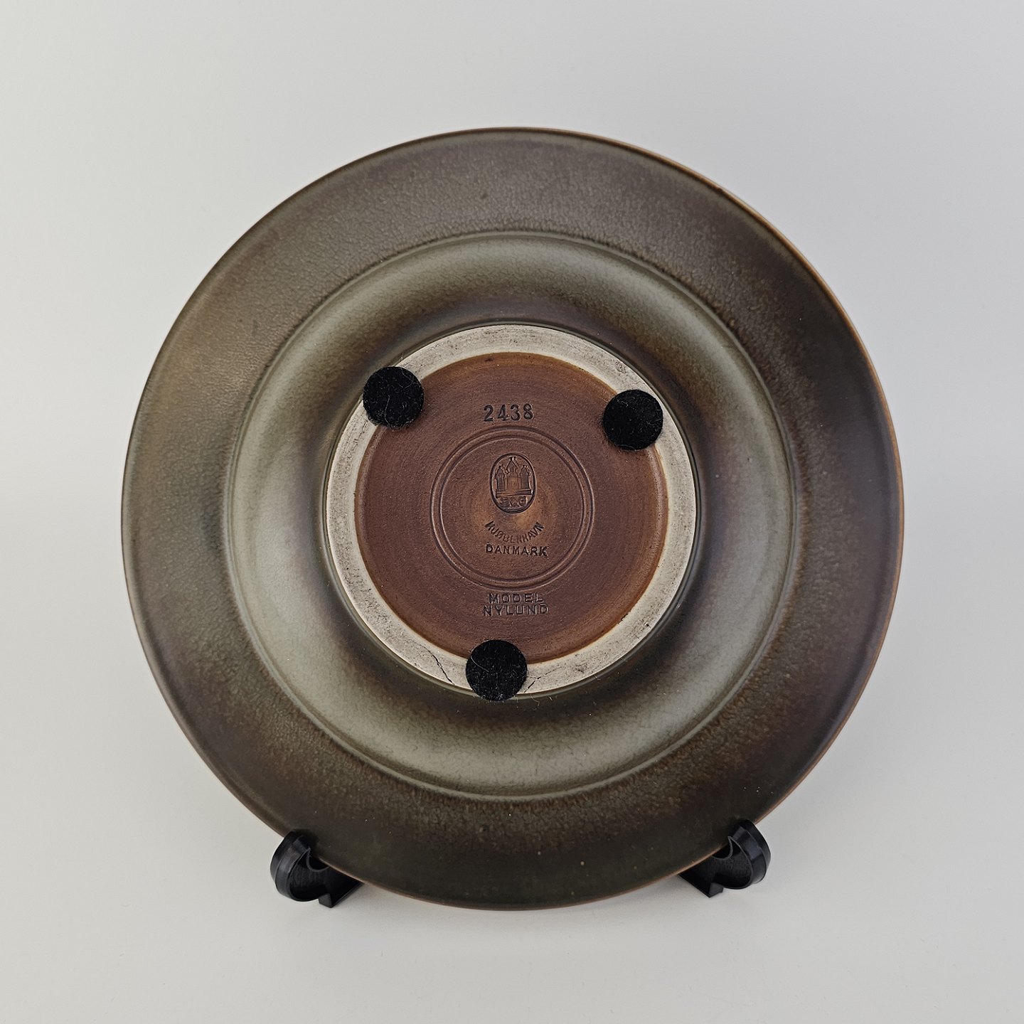 Rundt fad i stentøj med brun glasur. Nr. 2738, Model Nylund