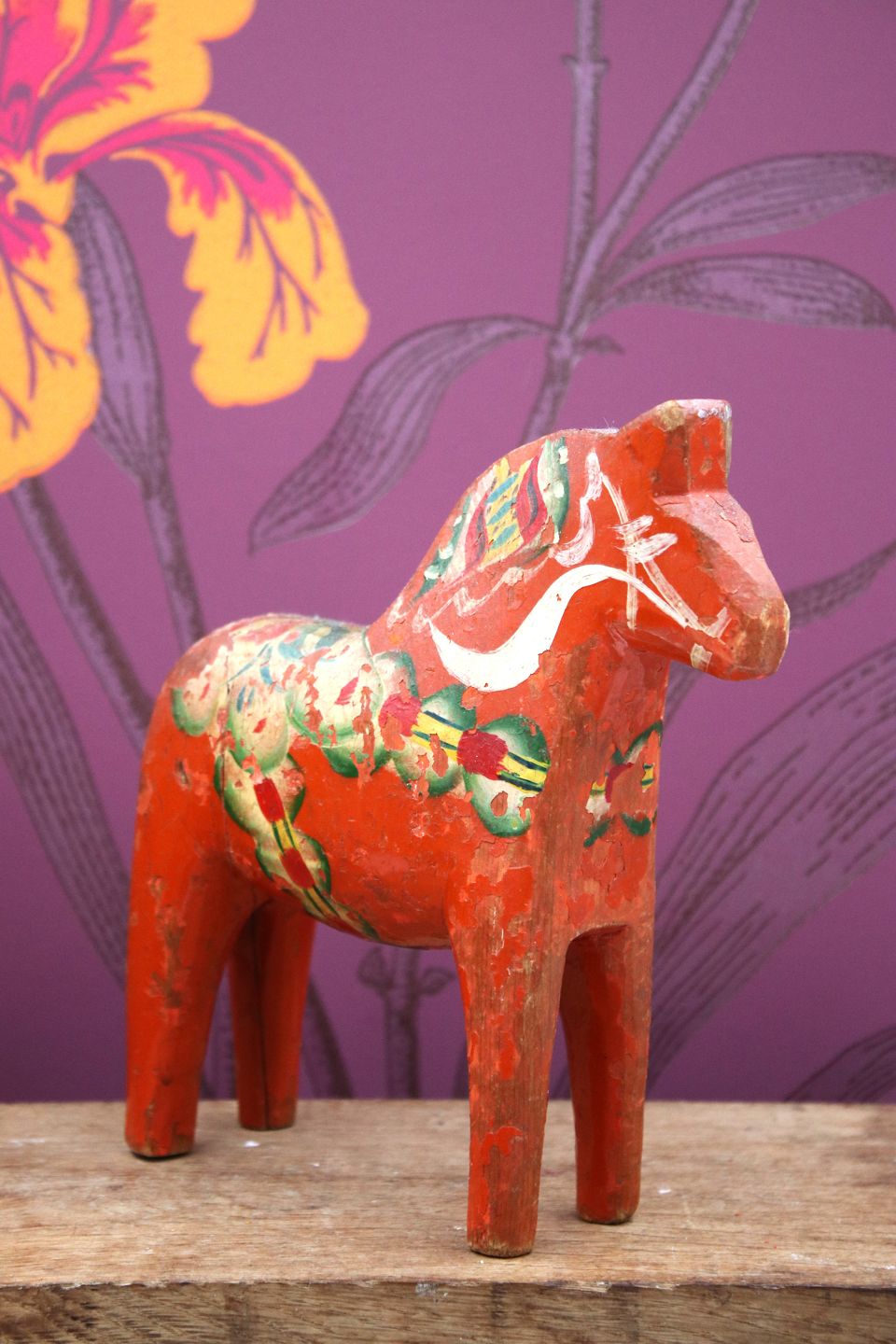 Gammel svensk Dalarhest med original bemaling med fin patina...