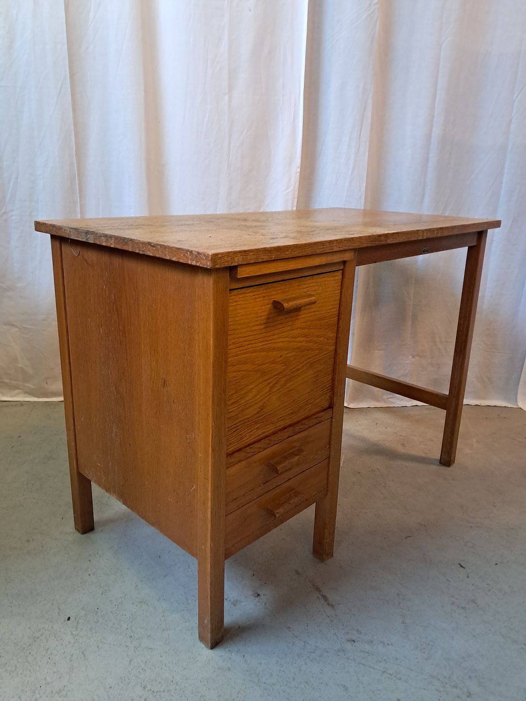 Børne skrivebord i fineret egetræ, fra 1950erne.