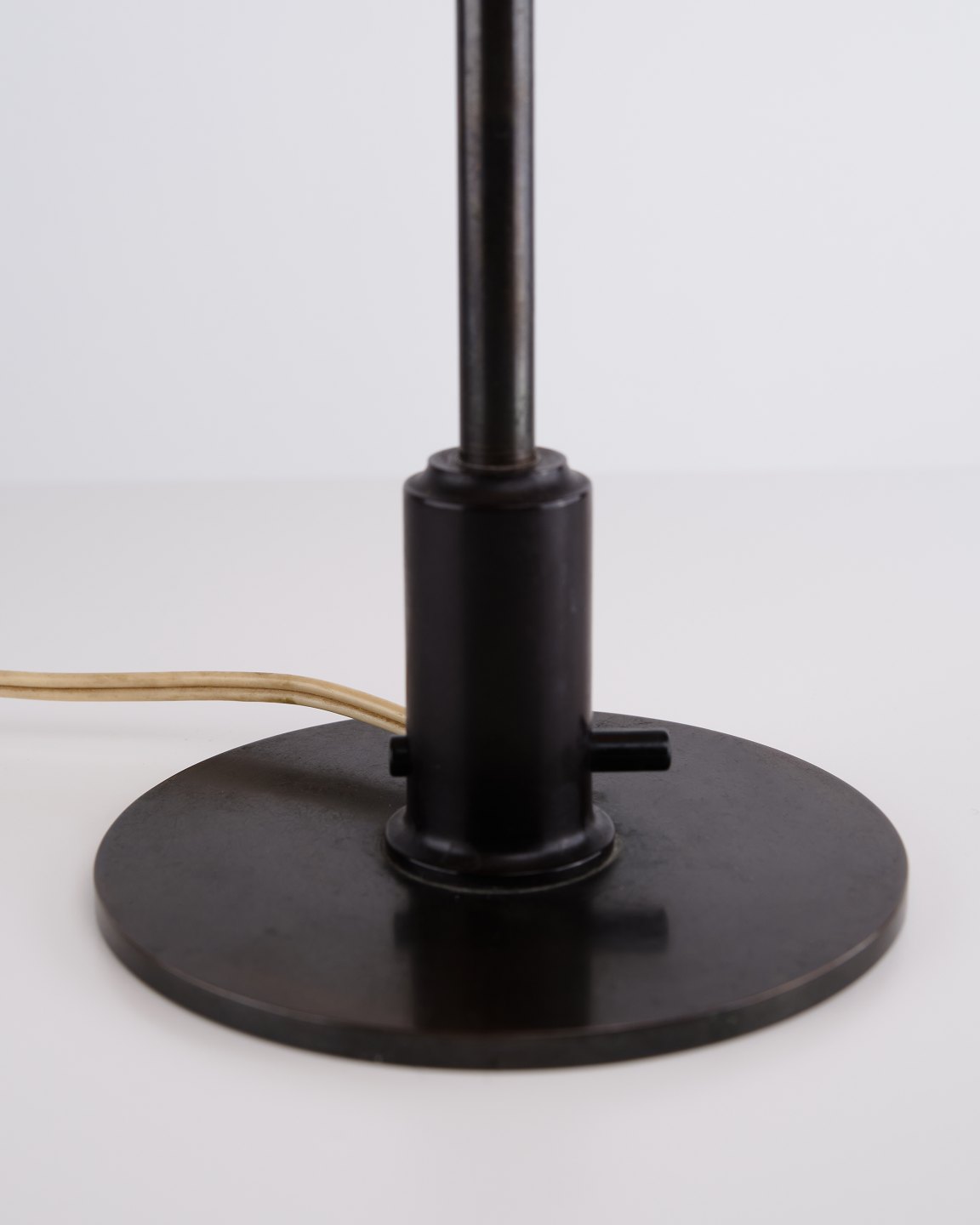 Poul Henningsen Bordlampe Model PH 3,5/2,5 med Gulmalet Metaloverskærm med Stel i Bruneret Messing, Louis Poulsen 1930erne