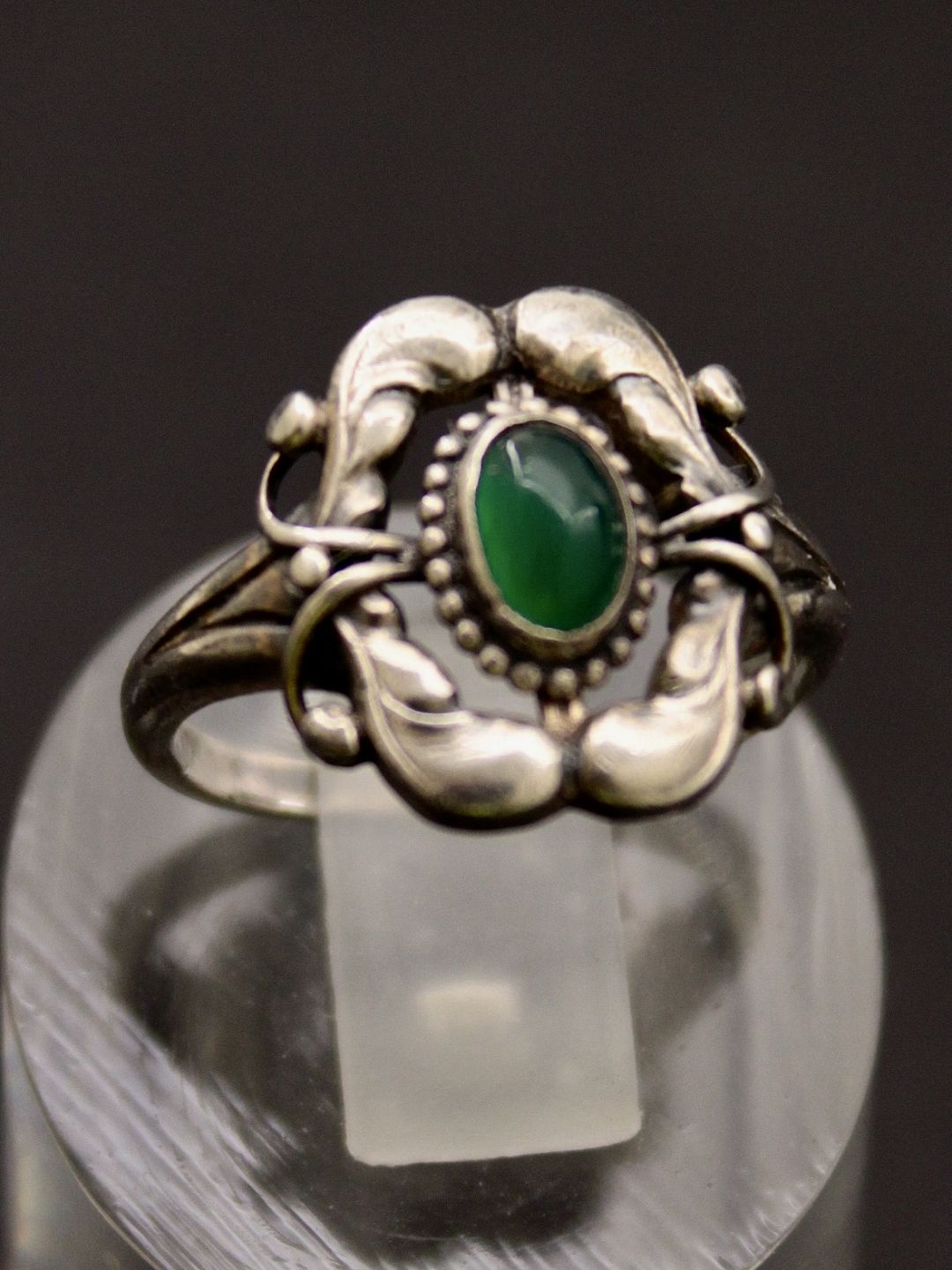 Georg Jensen vintage ring størrelse 49 design 30 stempel fra år 1930-45 med grøn agat emne nr. 634161