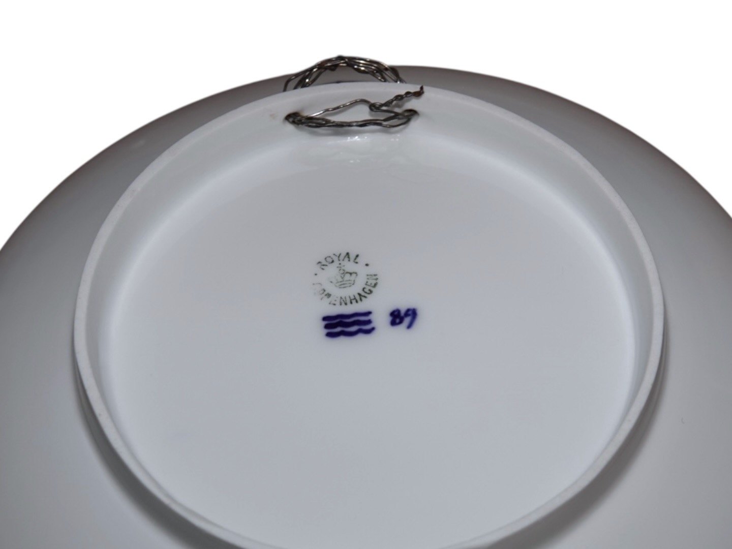 Royal Copenhagen Mindeplatte fra 1905 dekoreret med en sæl med en laks i munden i anledning af Årsmøde i Fiskeriforeningen.