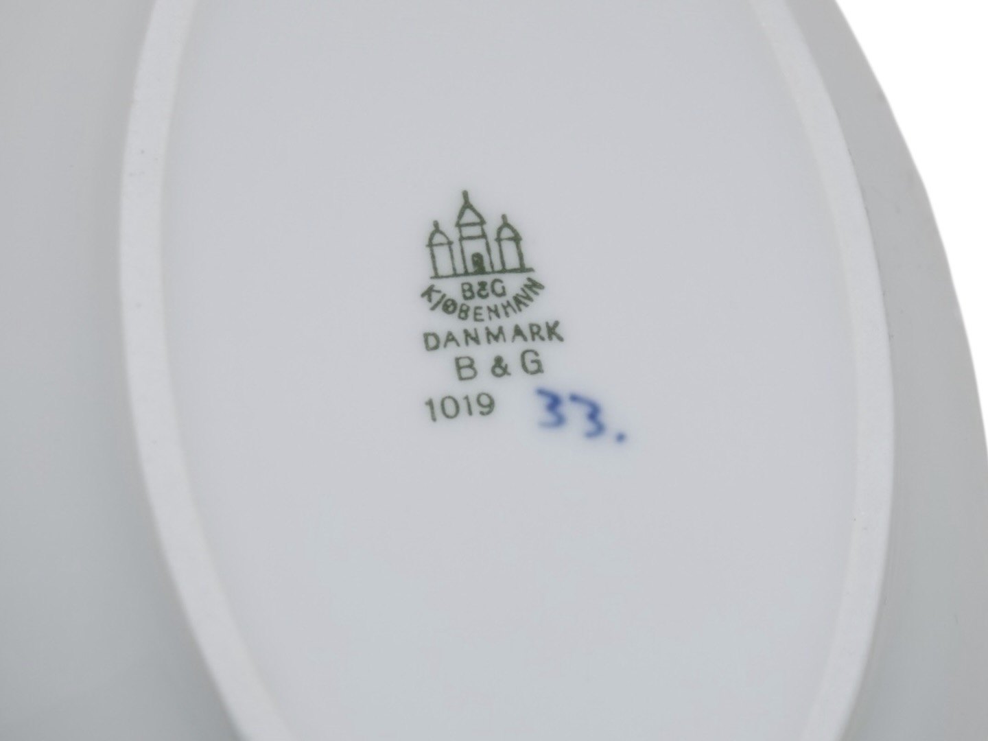 Bing & Grøndahl Blåmalet / Musselmalet tykt jernporcelæn, lille oval asiet.