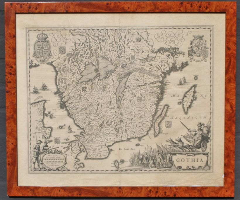 Van den Keere, Pieter (1571 – c. 1646) Holland: Kort over Sydsverige. ca. 1610. Kobberstik. Usigneret. Latinsk udgave. H: 41,5 cm. B: 53 cm.
