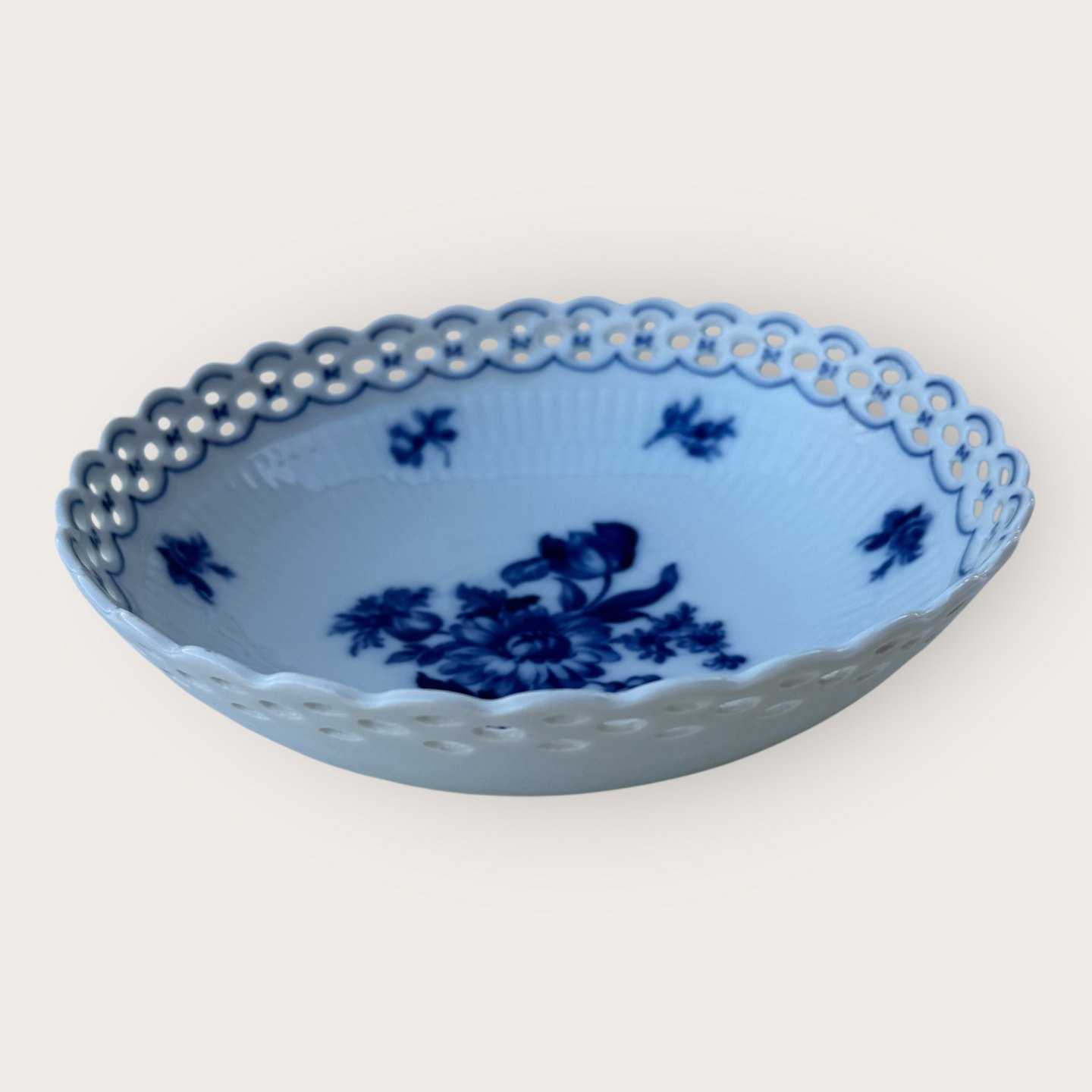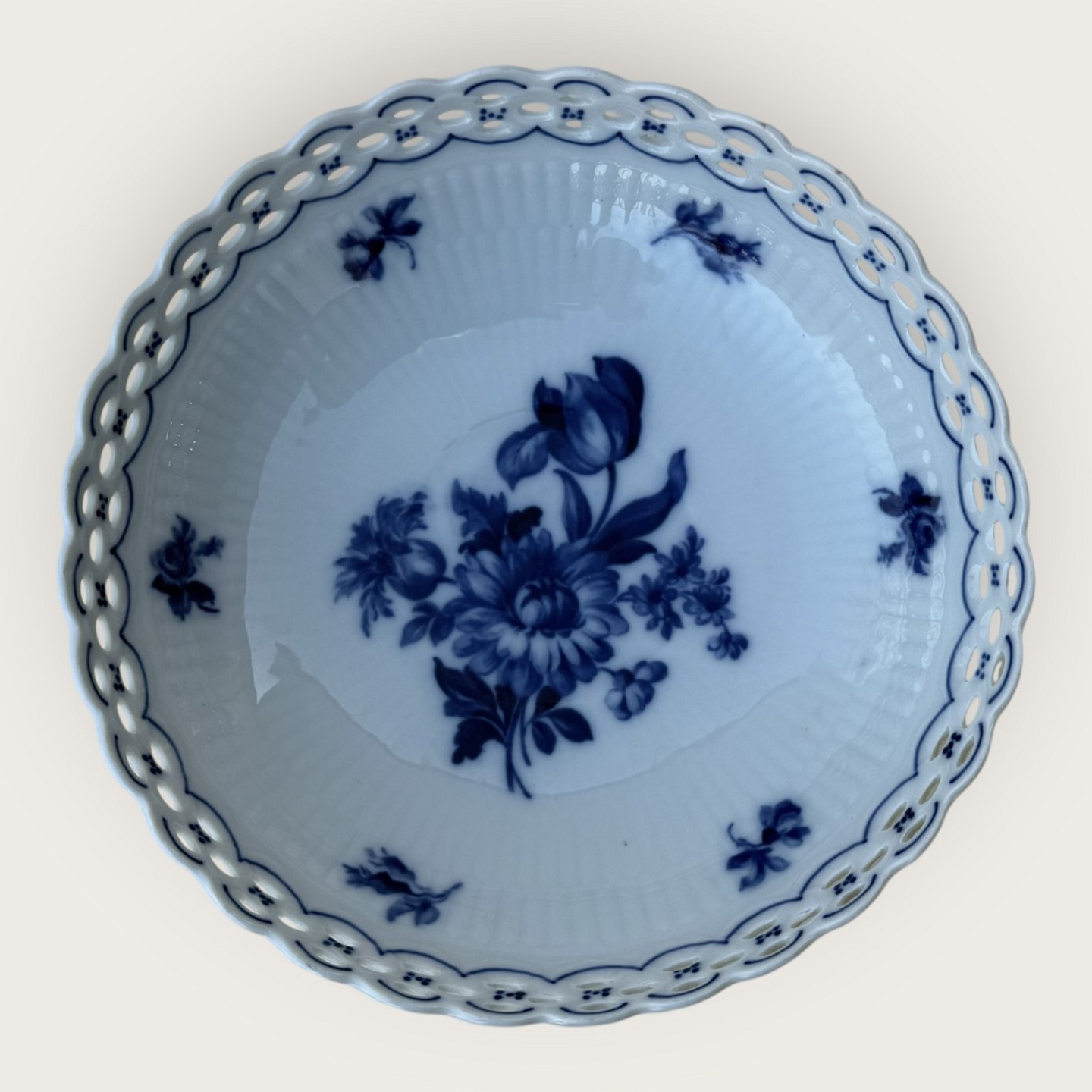 Schumann, Tyskland, skål med gennembrudt kant (retikuleret) med blå blomsterdekoration, diameter 21cm, højde 6cm *fin stand*