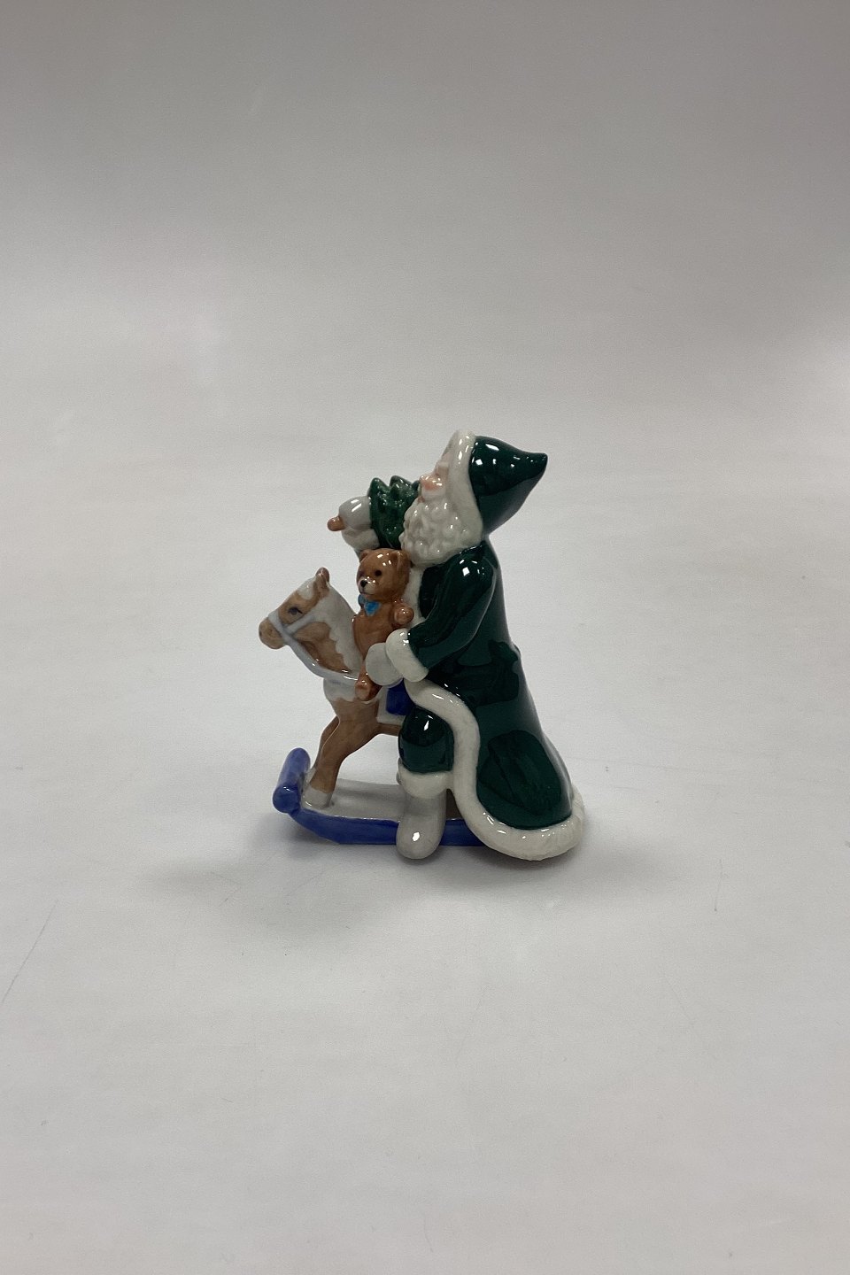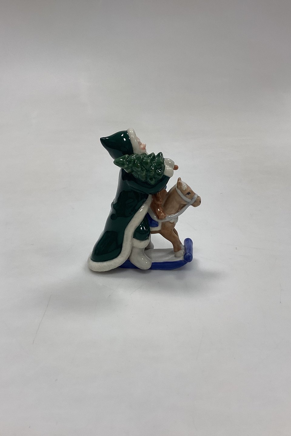 Royal Copenhagen Figur Årets Julemand 2005 No. 771. Julemanden i grønt tøj på gyngehest. Designet af Sven Vestergaard.