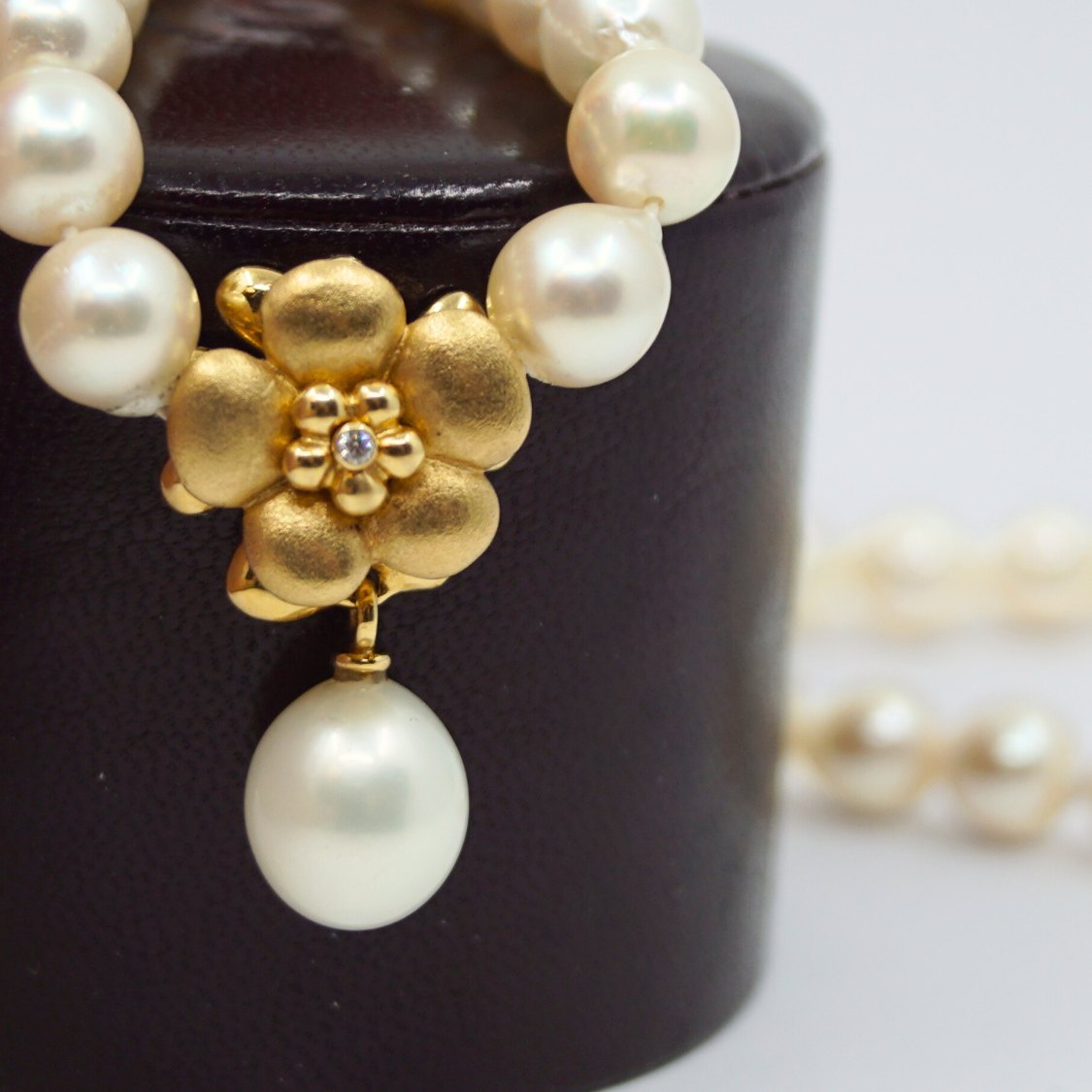 Ole Lynggaard, Charlotte Lynggaard; Blomsterlås af 18 kt. guld med perle og diamant