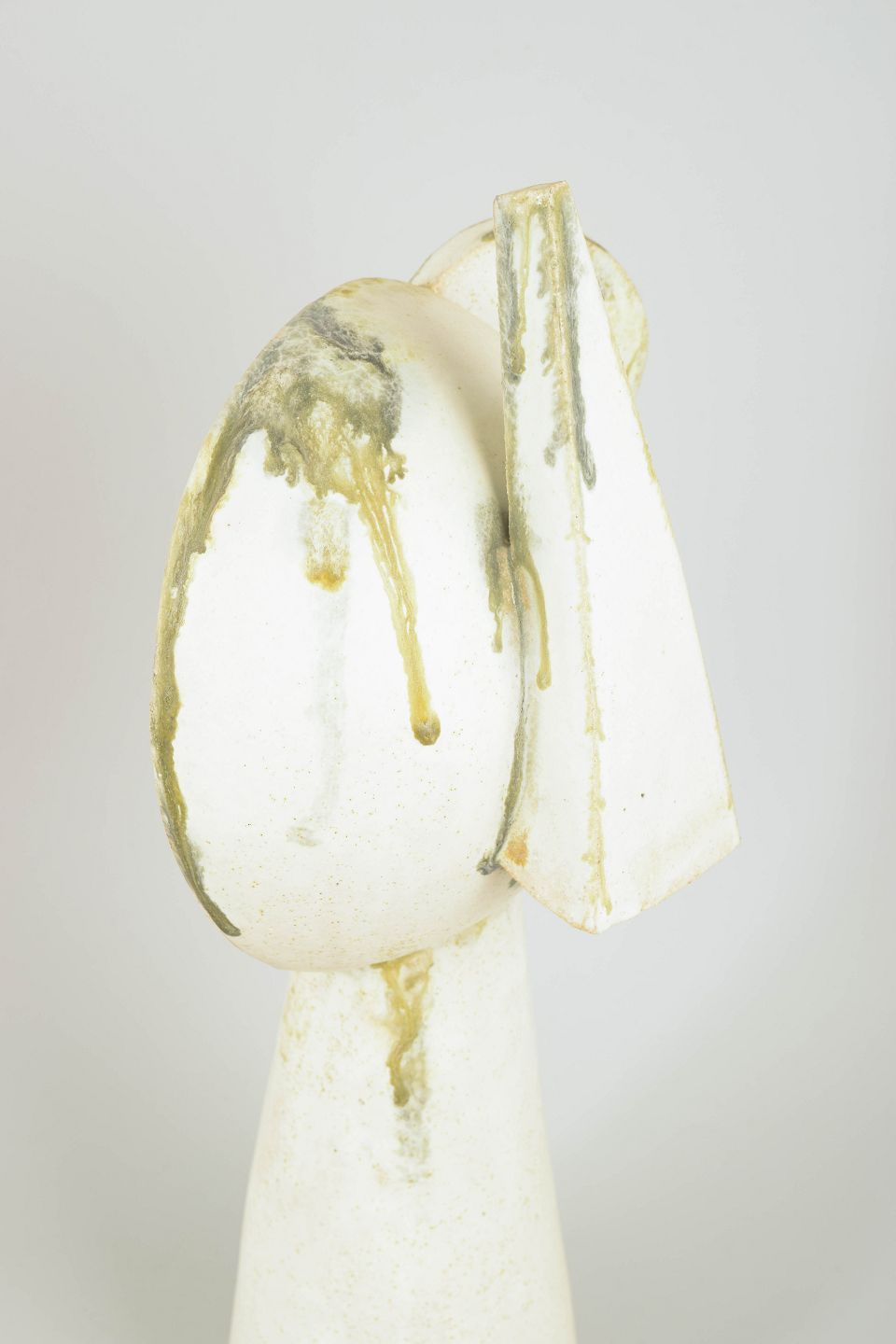 Christina Muff, dansk samtidskeramiker (f. 1971). Stort kubistisk unika ansigt med cremehvid mat glasur og farvede glasurløbere. "The art of being extravagant" from the kilnfolk series.