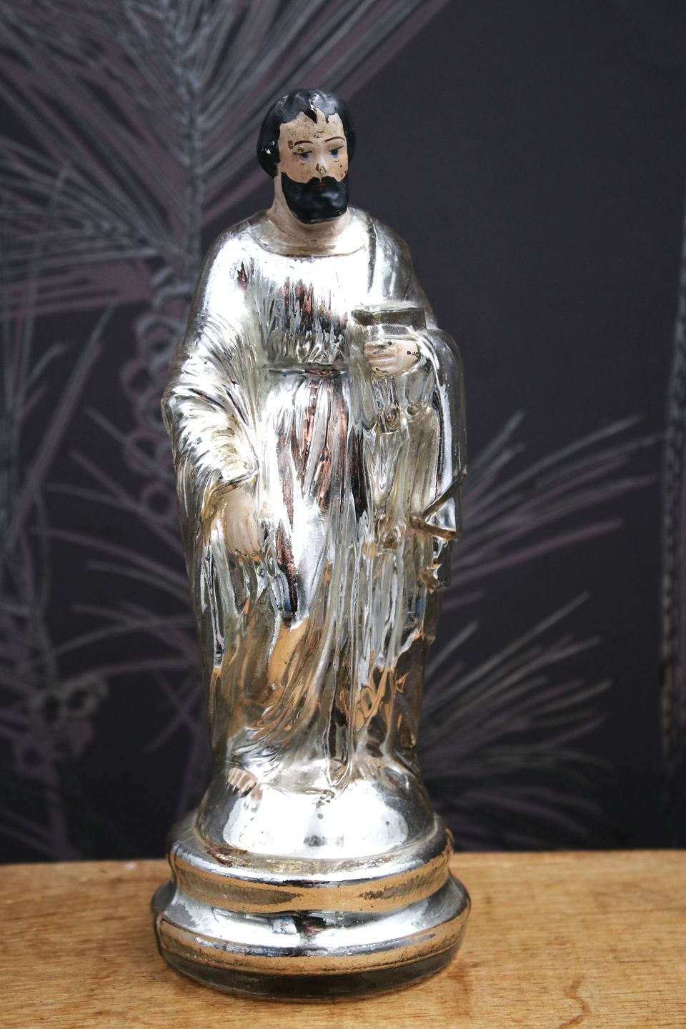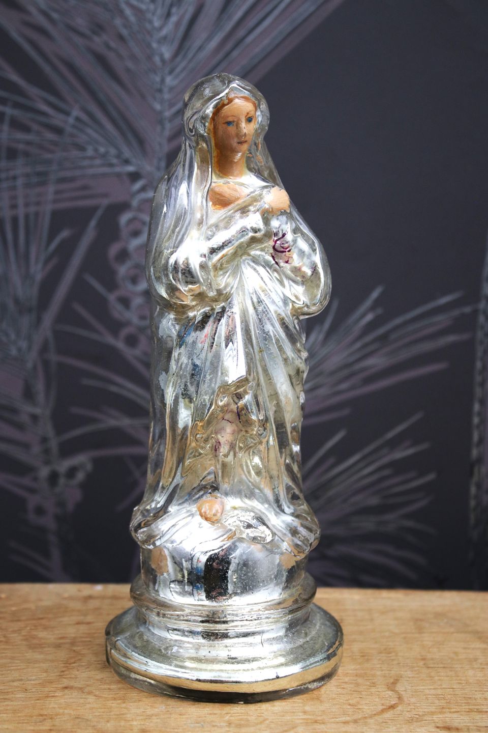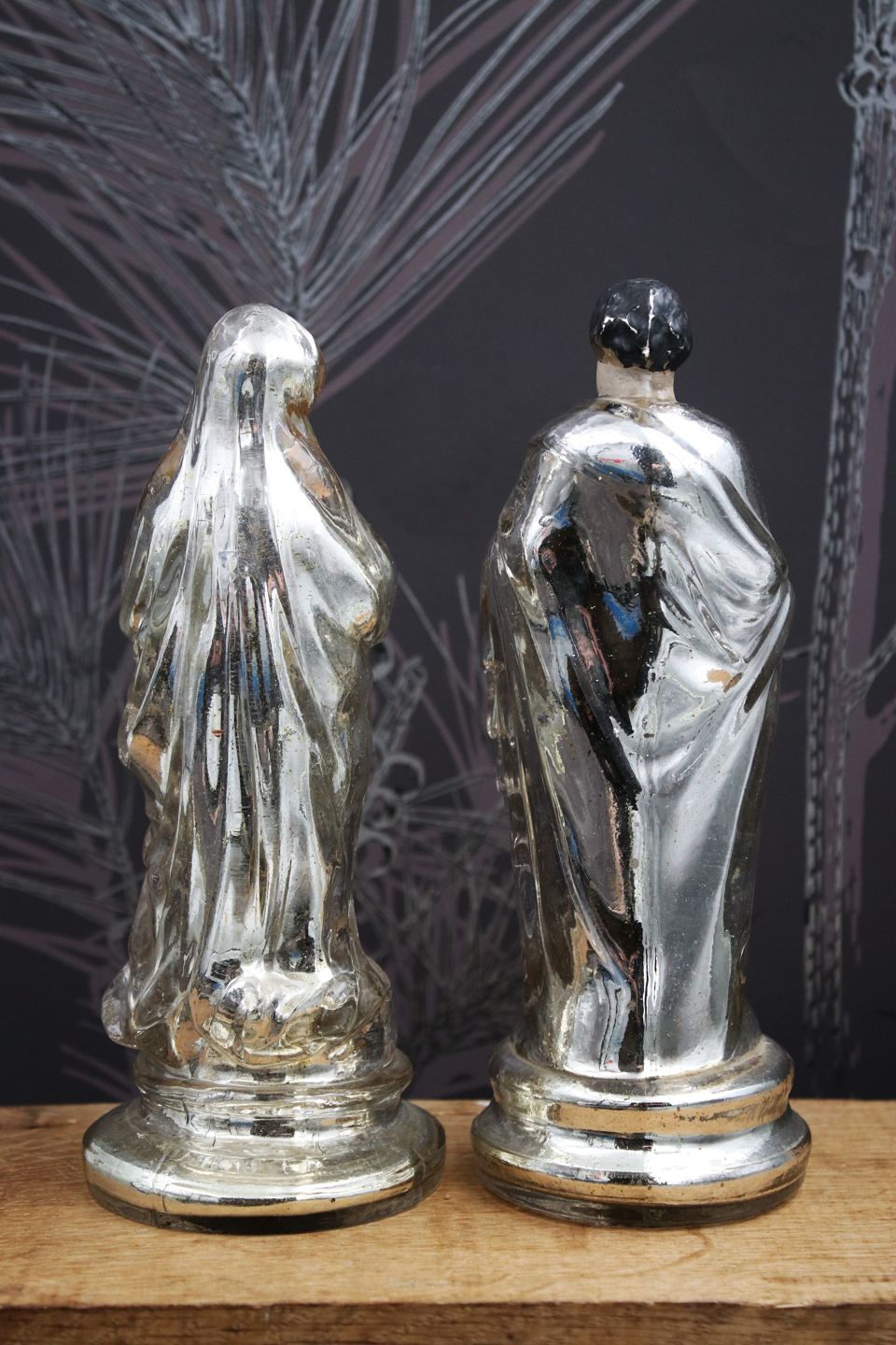 Antik 1800 tals Jesus & Madonna figur i fattigmandssølv / Mercury glass med bemalet ansigter...