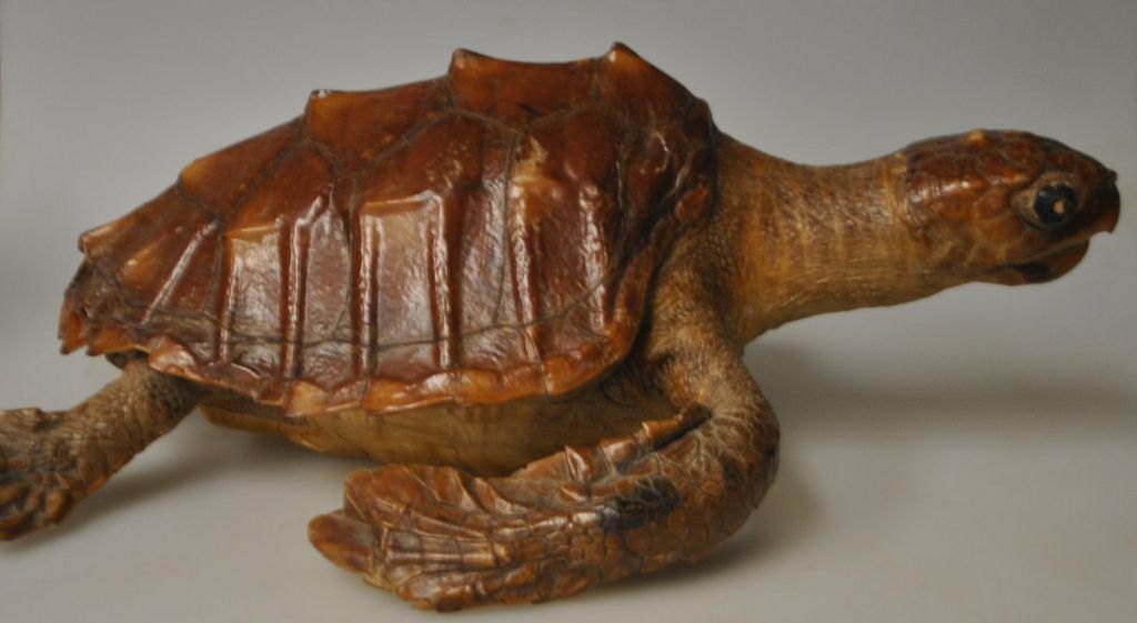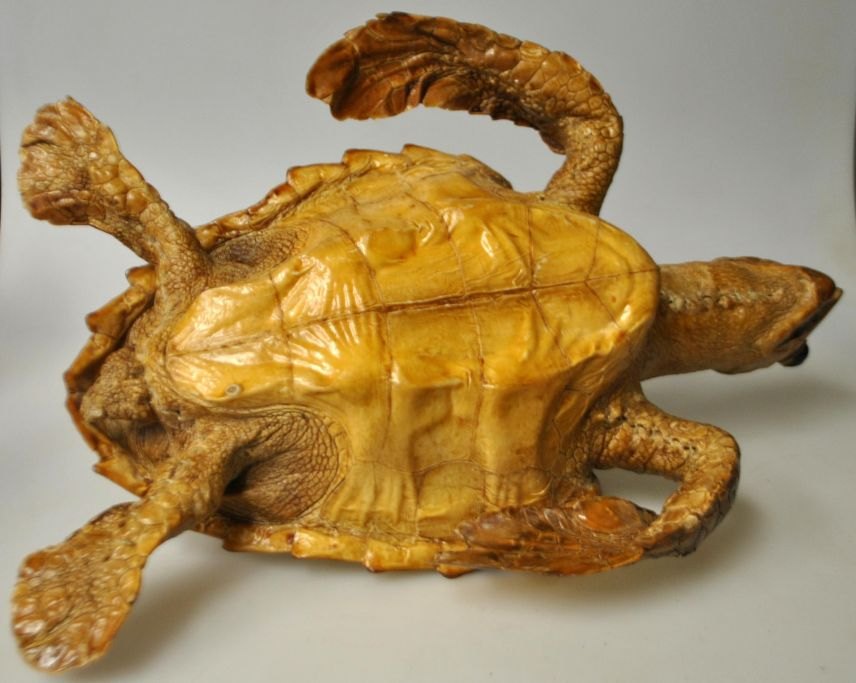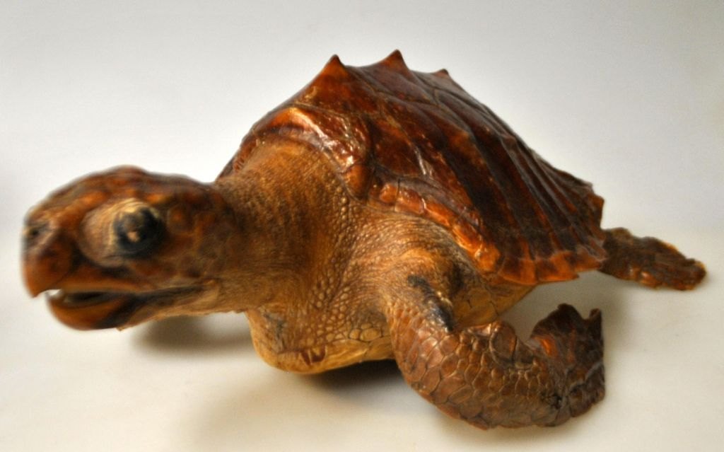 Udstoppet skildpadde, 19./20. årh. L.: 34 cm. B.: 19 cm.