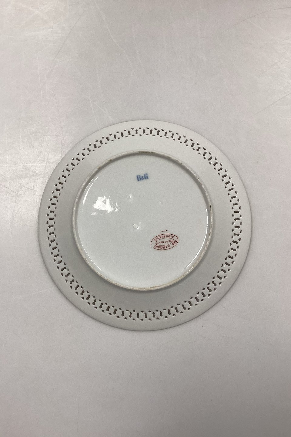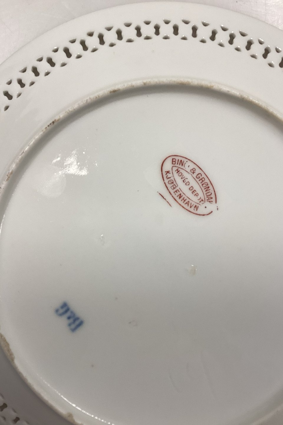 Bing og Grøndahl Art Nouveau tallerken med gennembrudt kant og Hoveddepot mærke