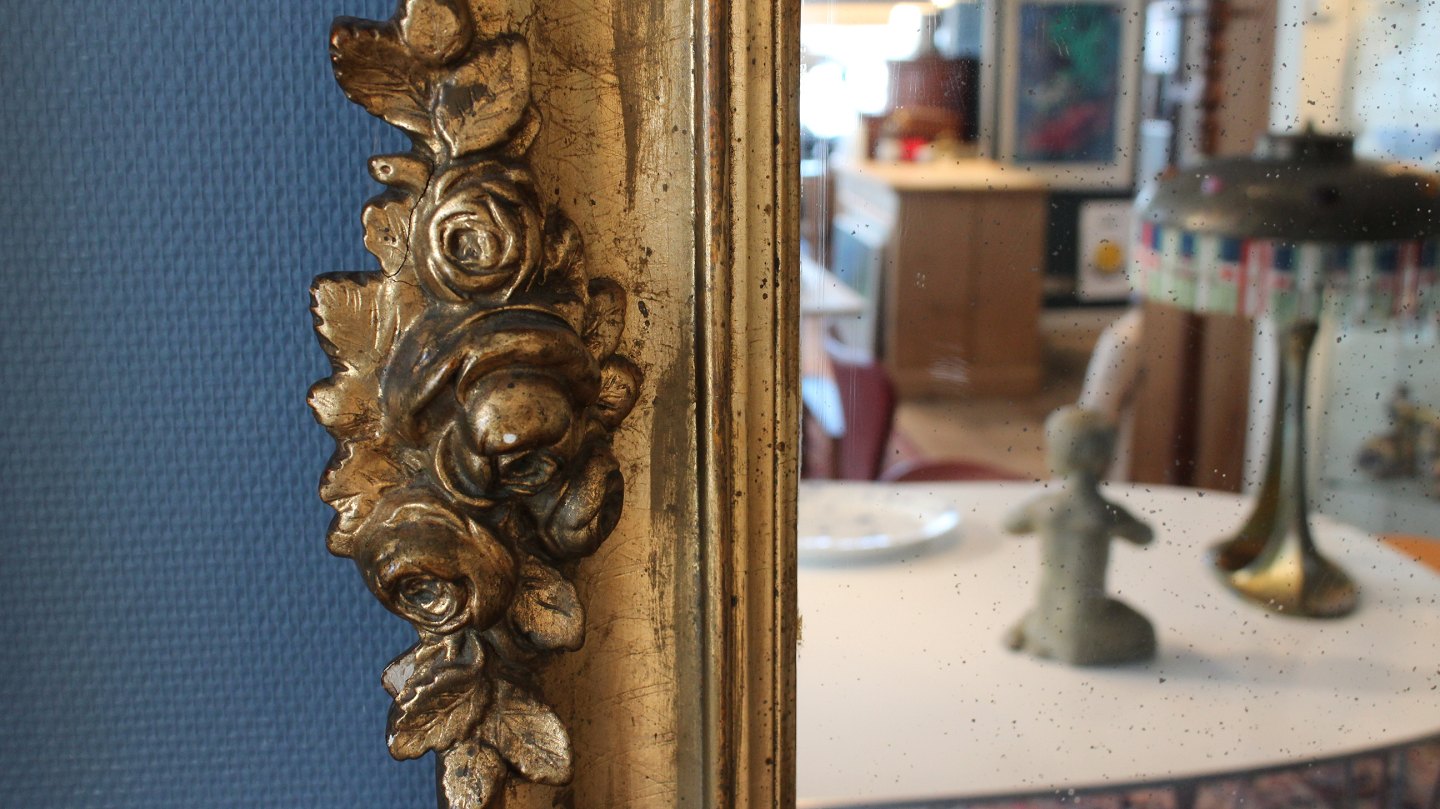 - spejlfelt med let plettet patina
