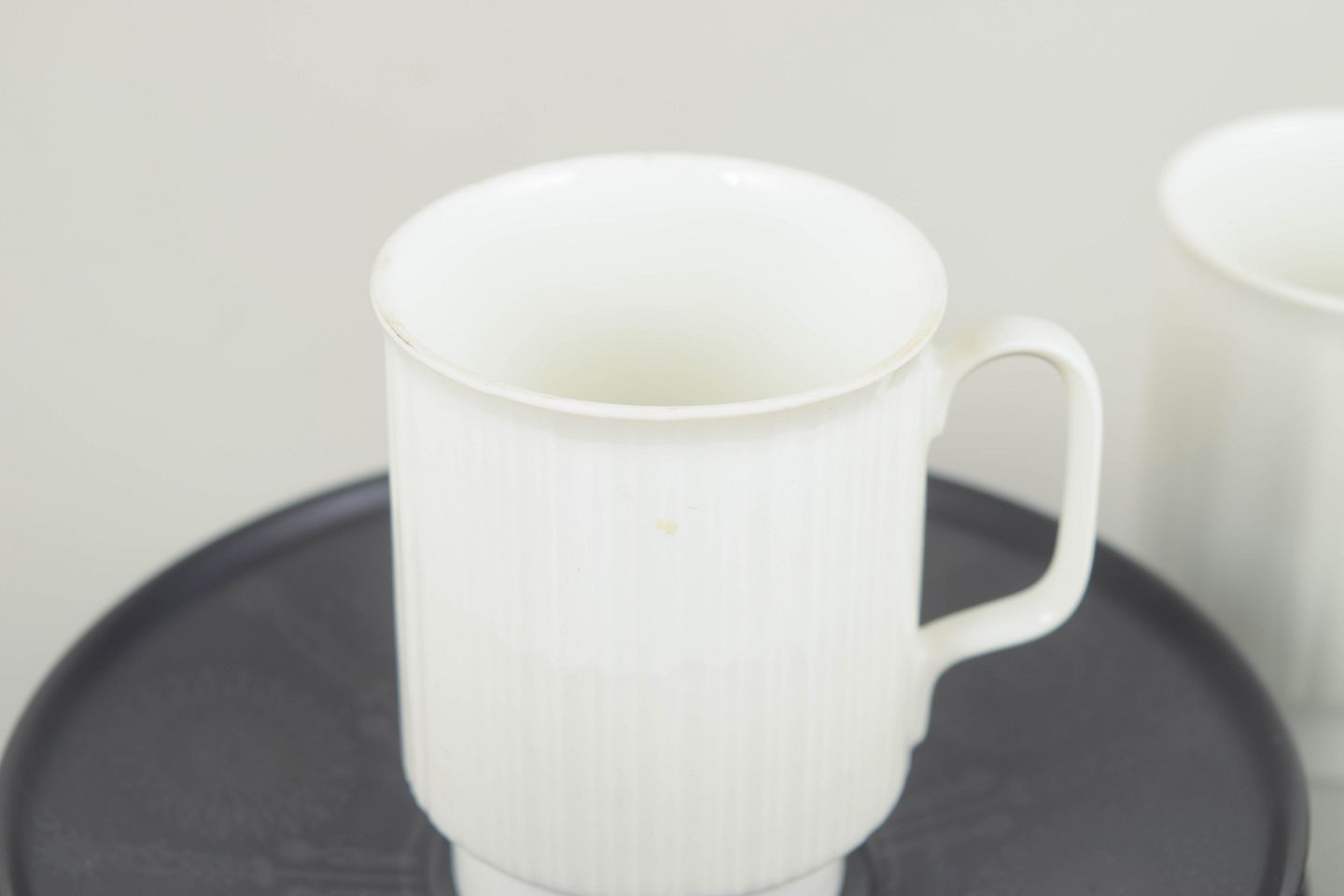 Elegante espressokopper i porcelæn med tilhørende underkopper, udført i et enkelt og funktionalistisk formsprog karakteristisk for Tapio Wirkkalas arbejde for Rosenthal i 1980’erne.