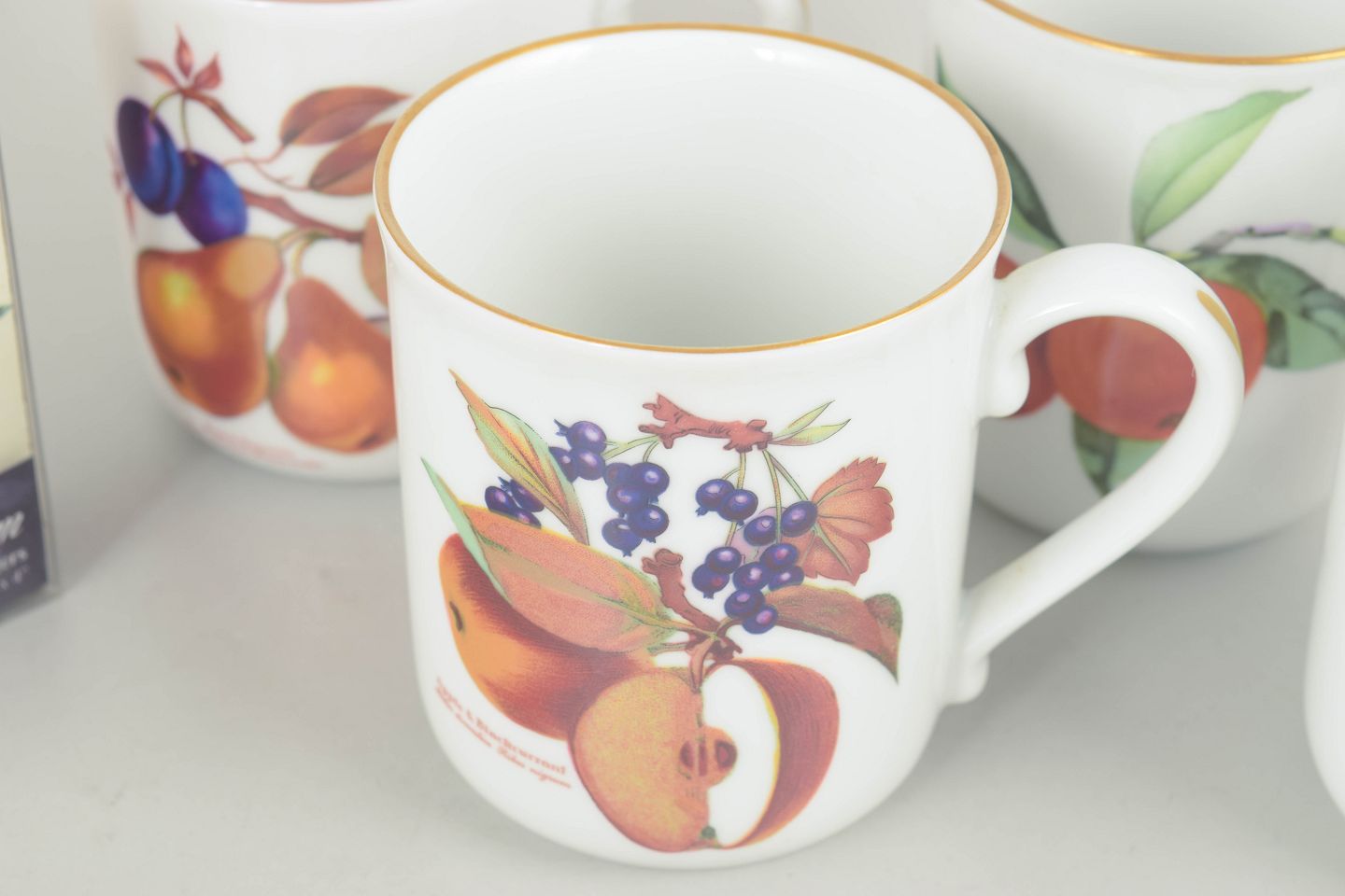 Royal Worcester Evesham, sæt af fire krus og sæt af seks bordskånere.