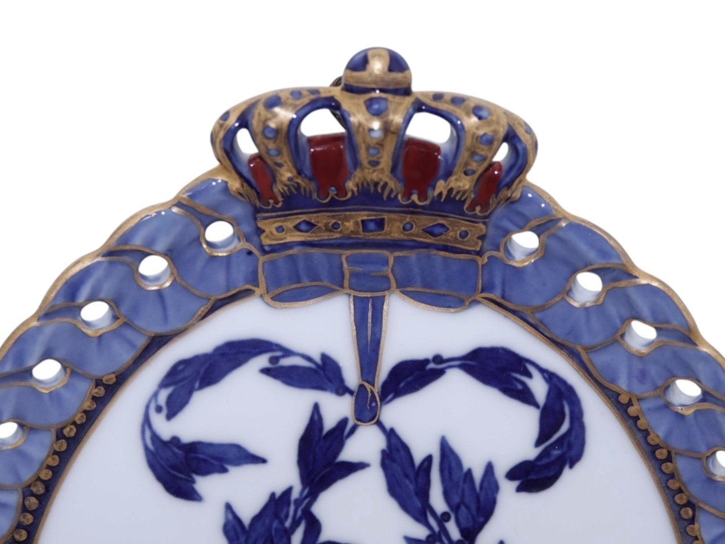 Royal Copenhagen Mindeplatte fra 1897 med guldkant.