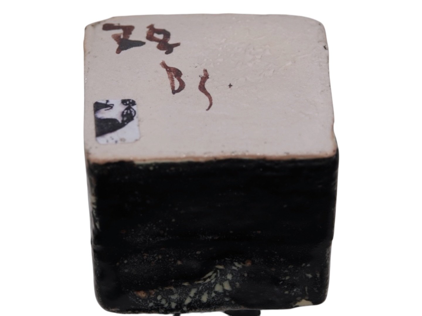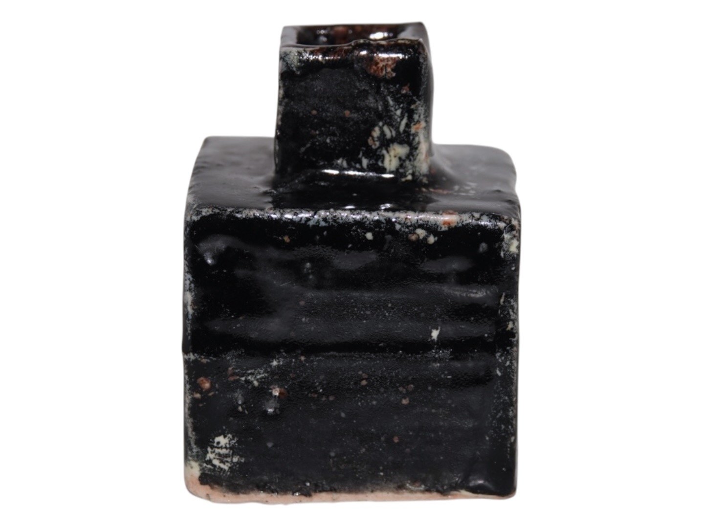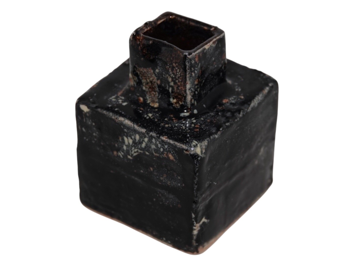 Bente Skjøttgaard keramik, firkantet miniature vase med sort glasur.
