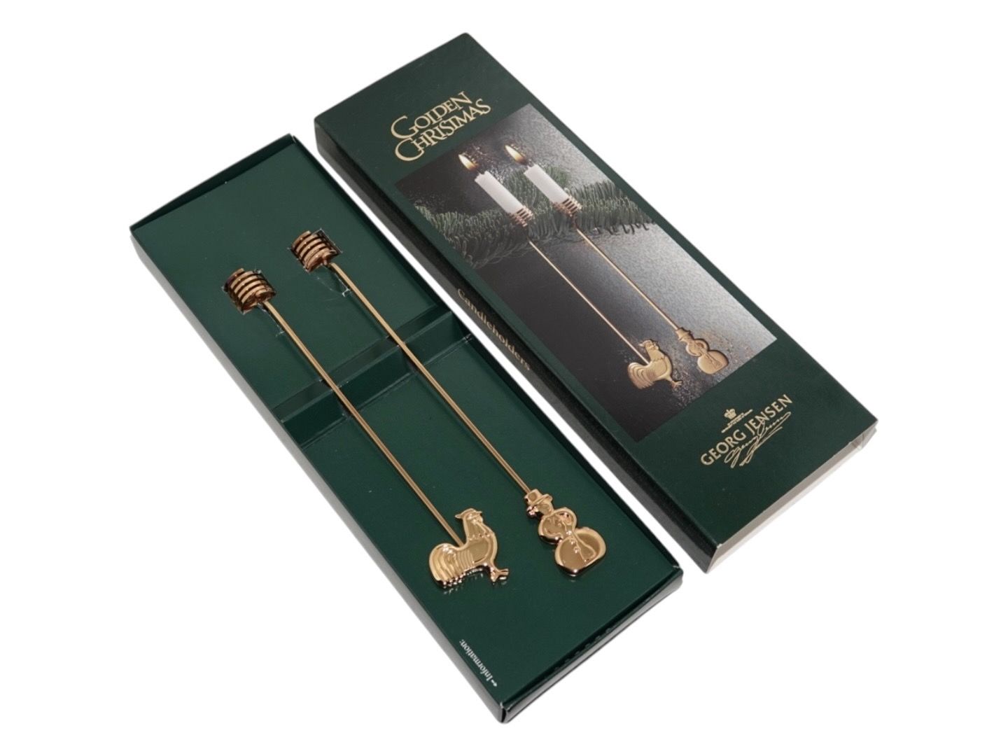 Georg Jensen Golden Christmas, lysholder med snemand og hane fra 1999.