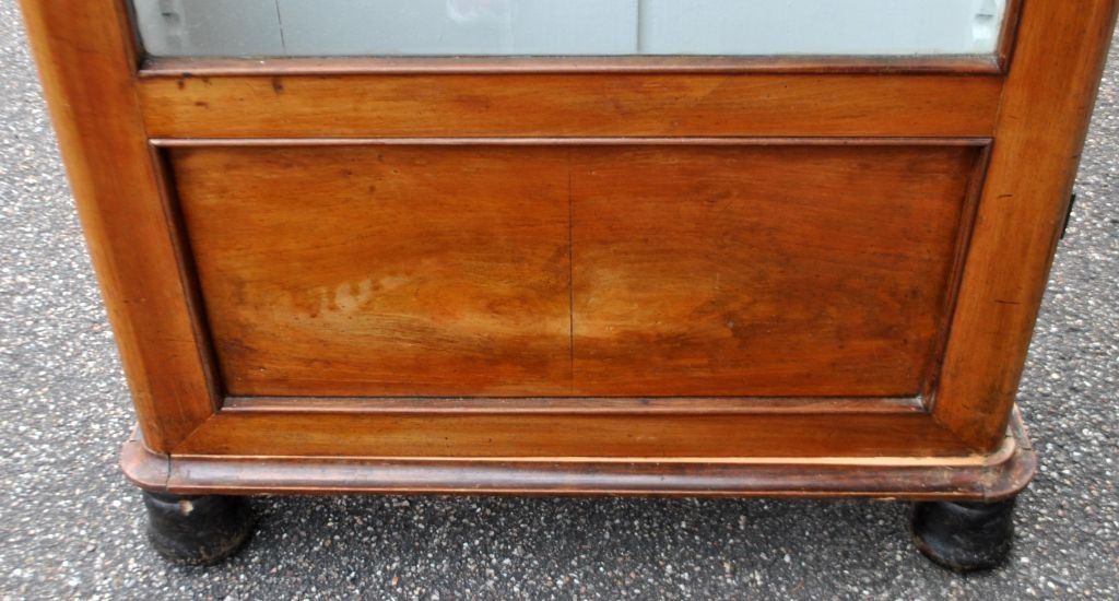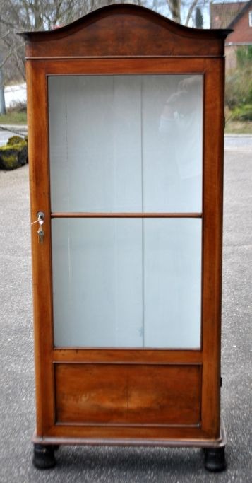 Bogskab i mahogni, 19. årh. Indvendig hvidmalet. Med to glashylder og en hvidmalet træhylde. H: 180 cm. B: 80 cm. D: 30 cm.