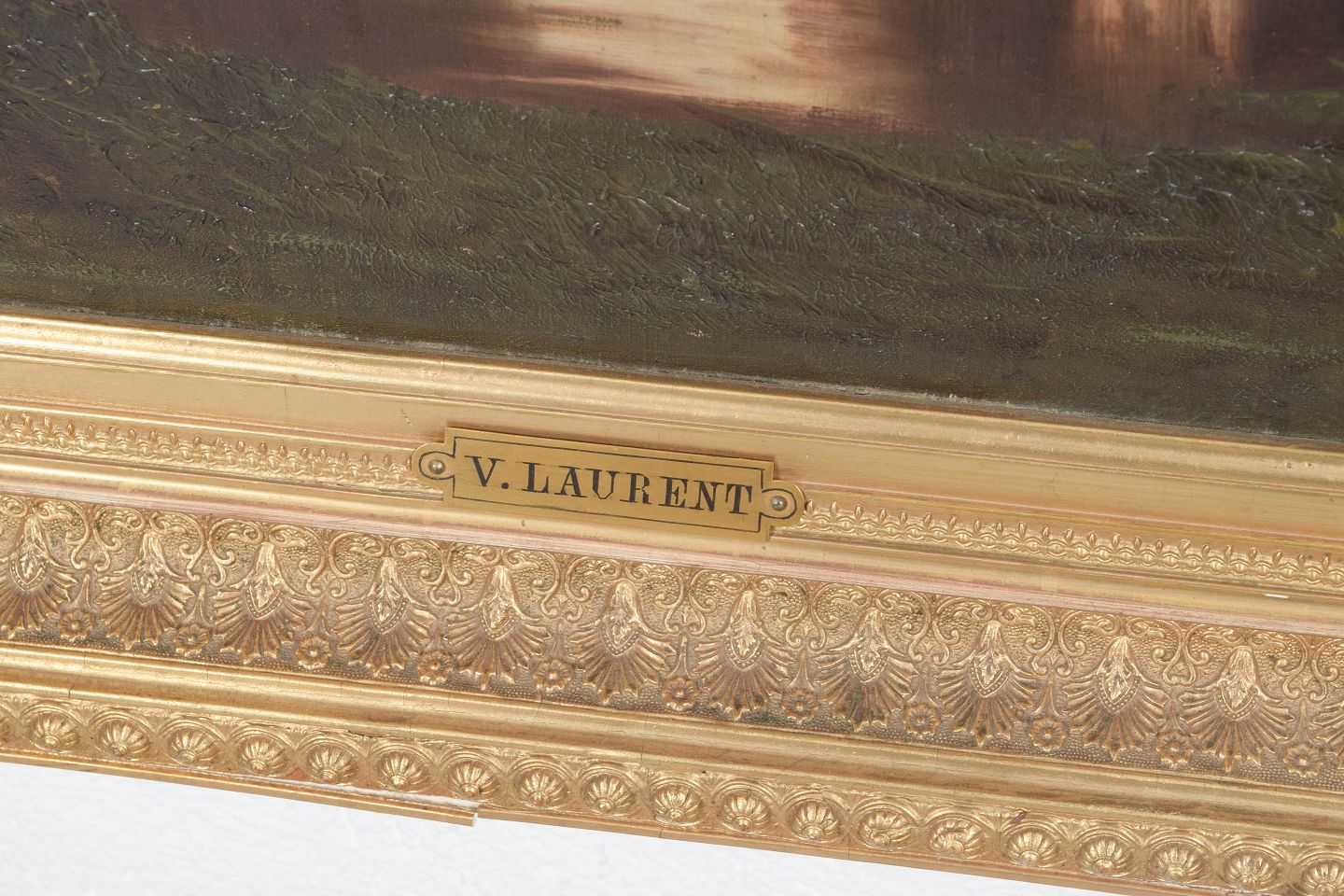 V. Laurent, oliemaleri på lærred, listet fransk kunstner.