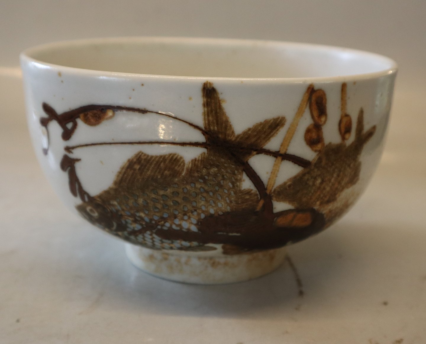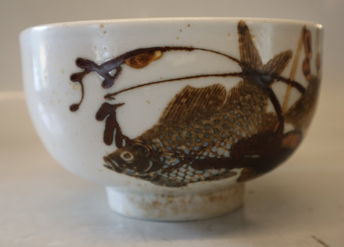 1053-5318 Alumnia Diana Stentøjsskål med fisk 10 x 17 cm Nils Thorsson Aluminia kunstfajance