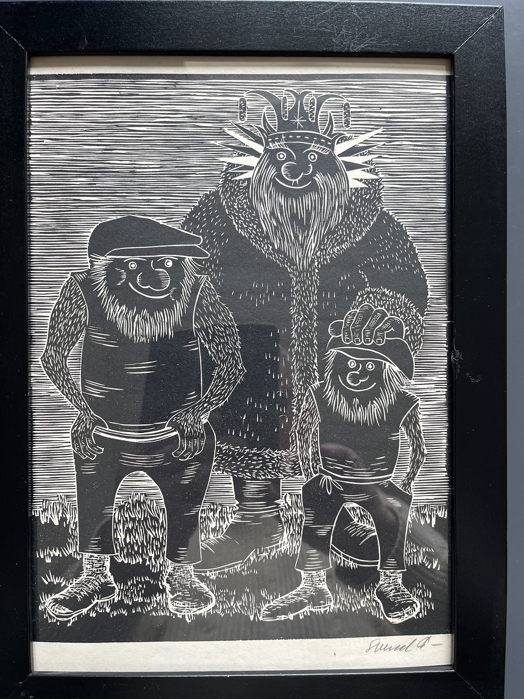 Linoleumssnit på papir.