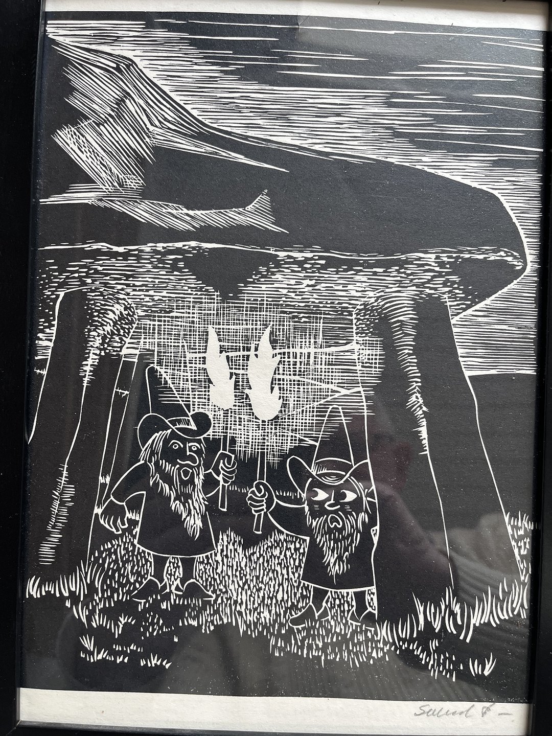 2 linoleumssnit af Svend P. Jørensen 1973.