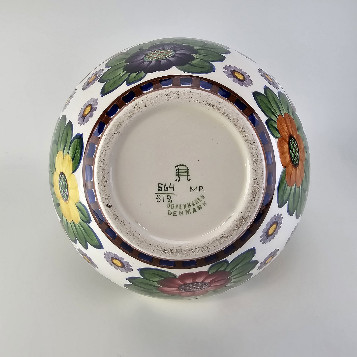 Vase med to hanke i fajance dekoreret med farverigt blomstermotiv