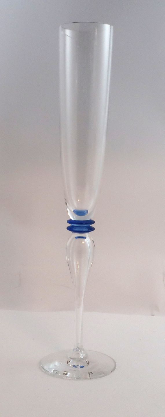 Attica, Royal Copenhagen med blå deco. Design Anja Kjær. Champagne glas. Højde 29 cm.