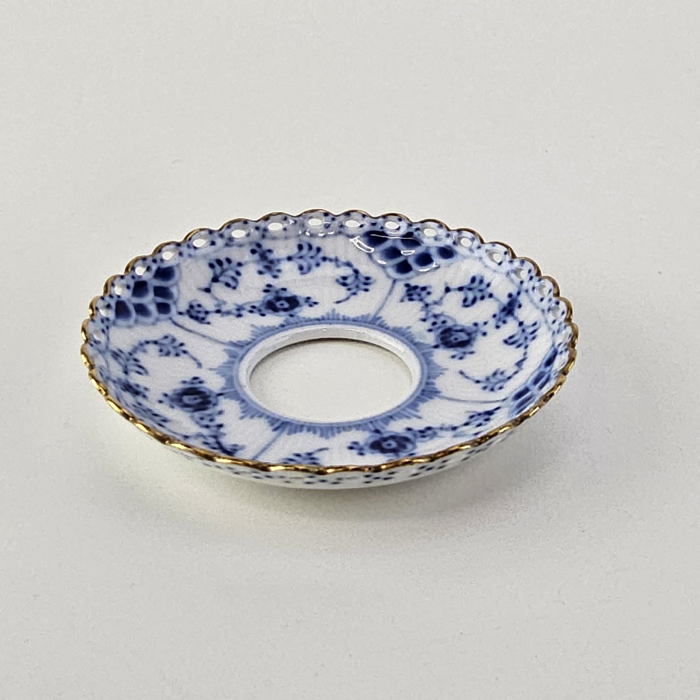 Lysmanchet i kongeligt porcelæn fra stellet Musselmalet Helblonde med guldkant. Nr. 1/1009