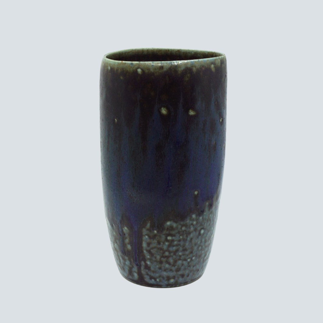 Arne Bang; Vase af stentøj med sort og blå glasur, nr. 3