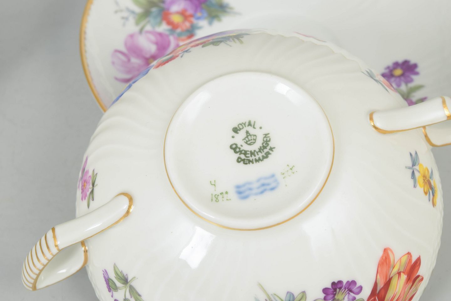 Royal Copenhagen blev grundlagt i 1775 og er en af Danmarks mest anerkendte porcelænsfabrikker. Fabrikken er kendt for sit håndmalede porcelæn og høje kvalitet, hvor hvert stykke dekoreres individuelt af uddannede malere. Mønstre som saksisk blomst afspejler en lang europæisk tradition for blomsterdekoration på porcelæn og er fortsat eftertragtede blandt samlere verden over.